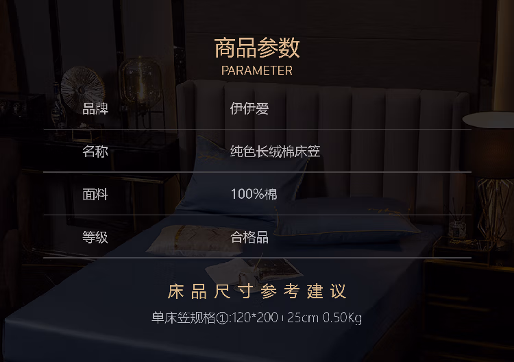 伊伊爱 TJ0WL02100841 /180*200*30cm 60S长绒棉纯色床罩 1.00 件/条 (计价单位:条) 宾利蓝