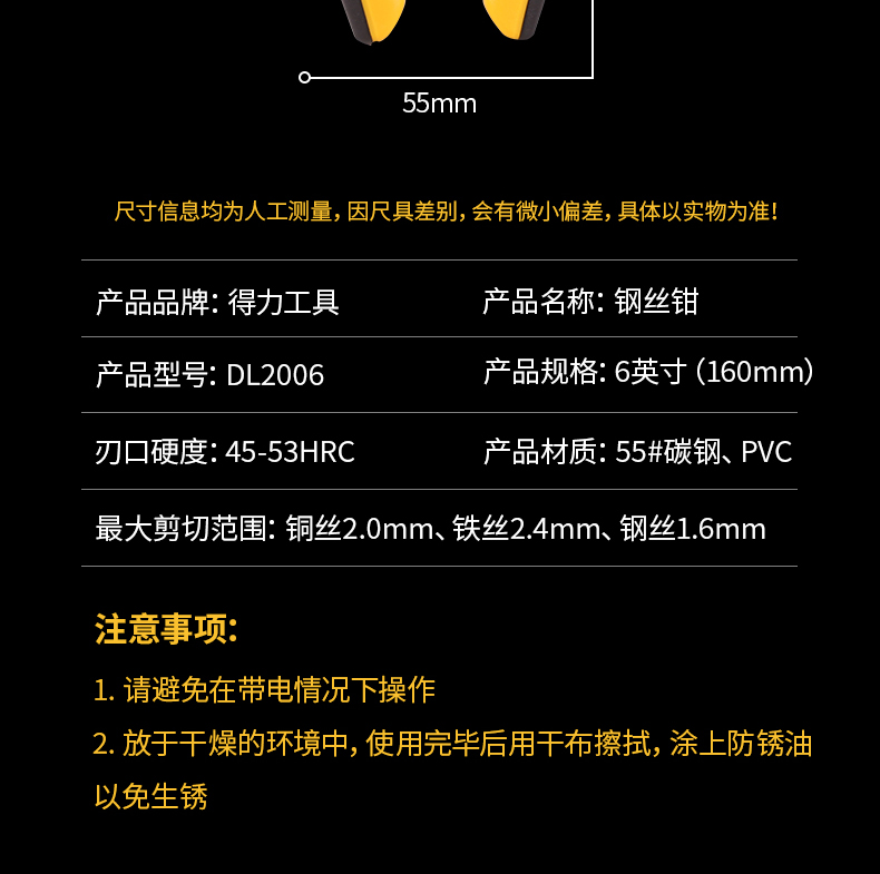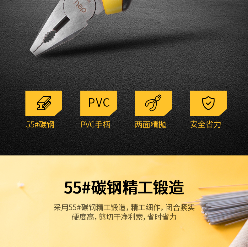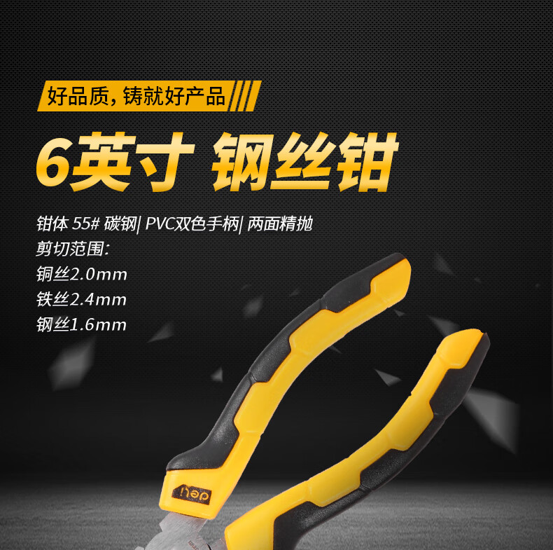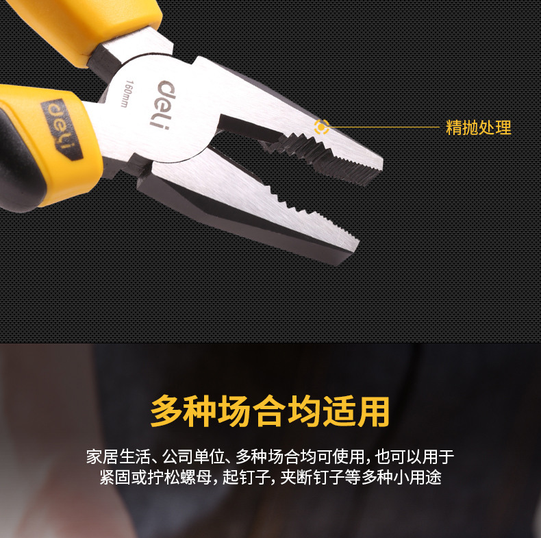 得力(deli) 双色胶柄钢丝钳老虎钳6英寸 DL2006 单位:把