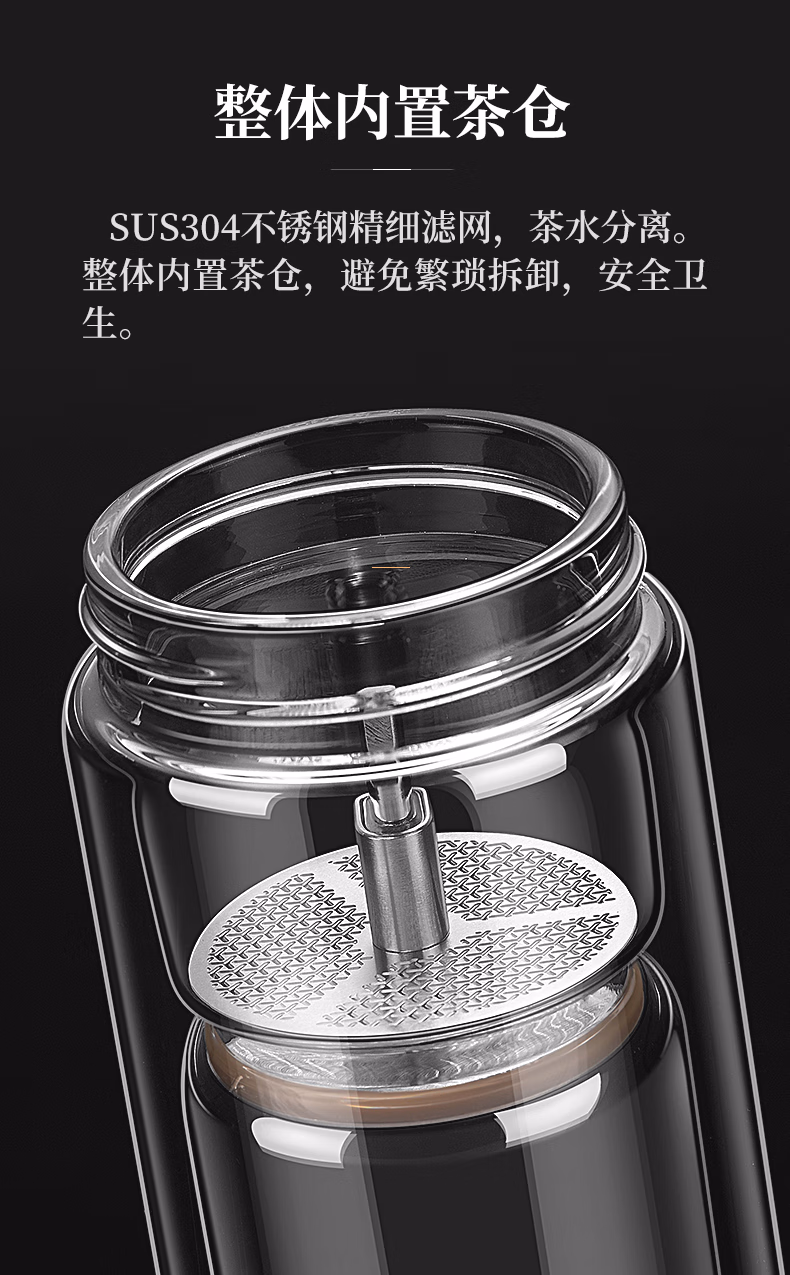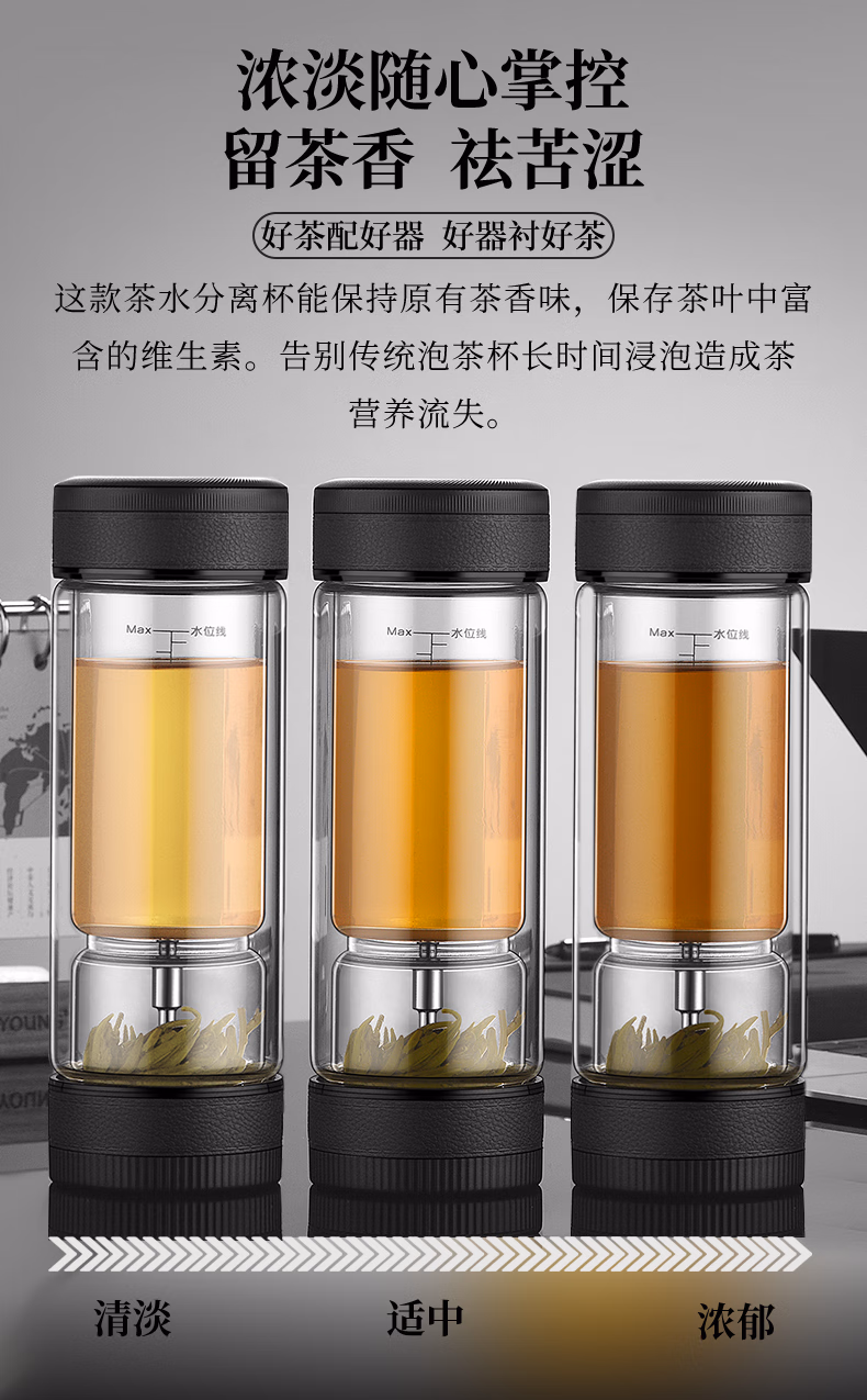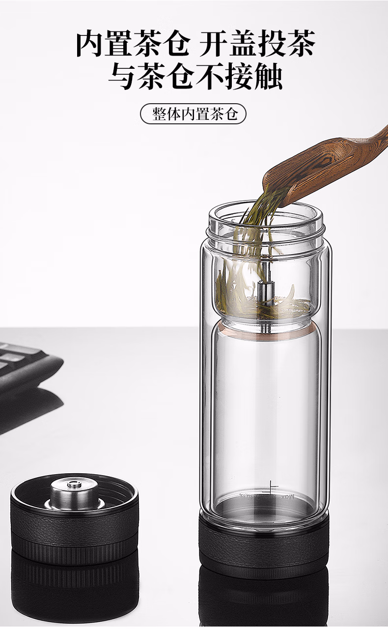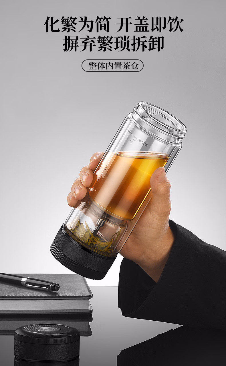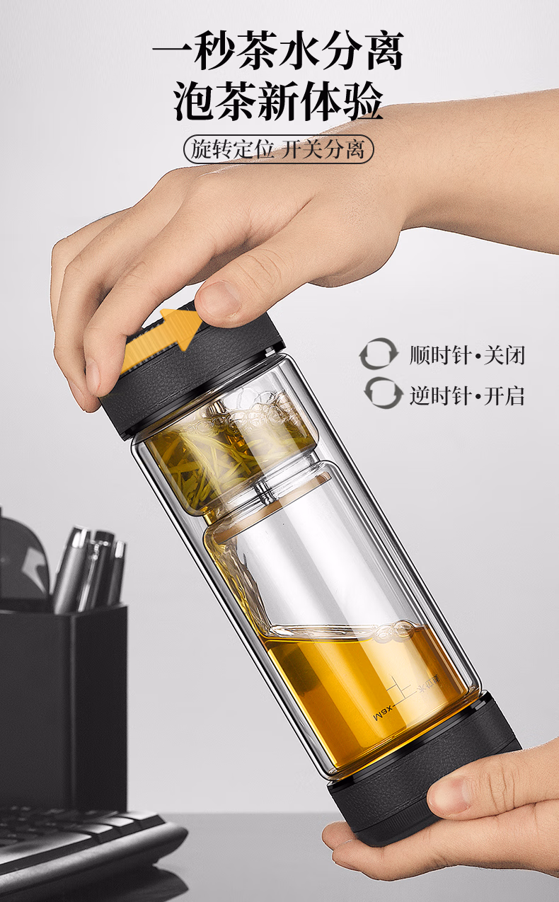 茶之恋 CZL-007-70X 380ml 茶水分离 便携 玻璃杯 (计价单位:个) 黑色