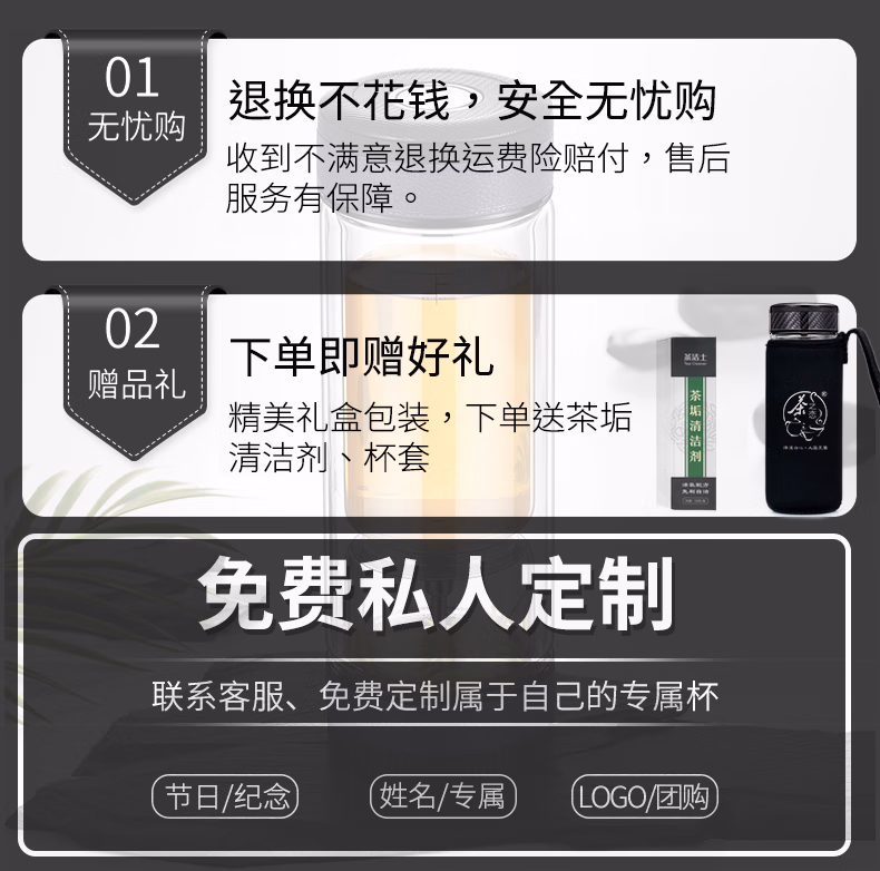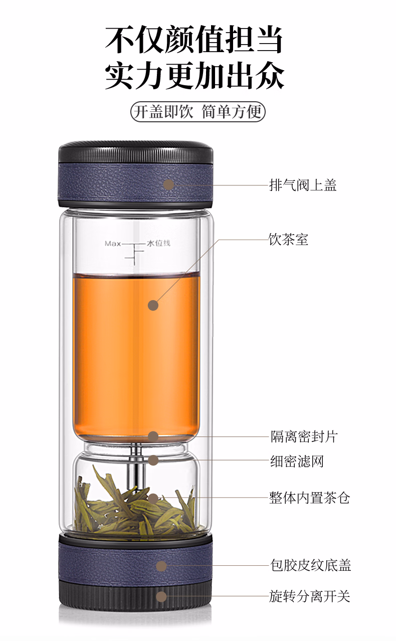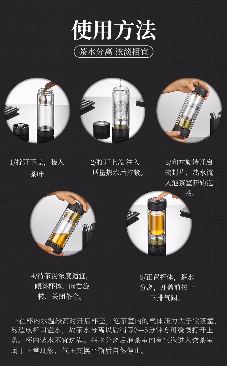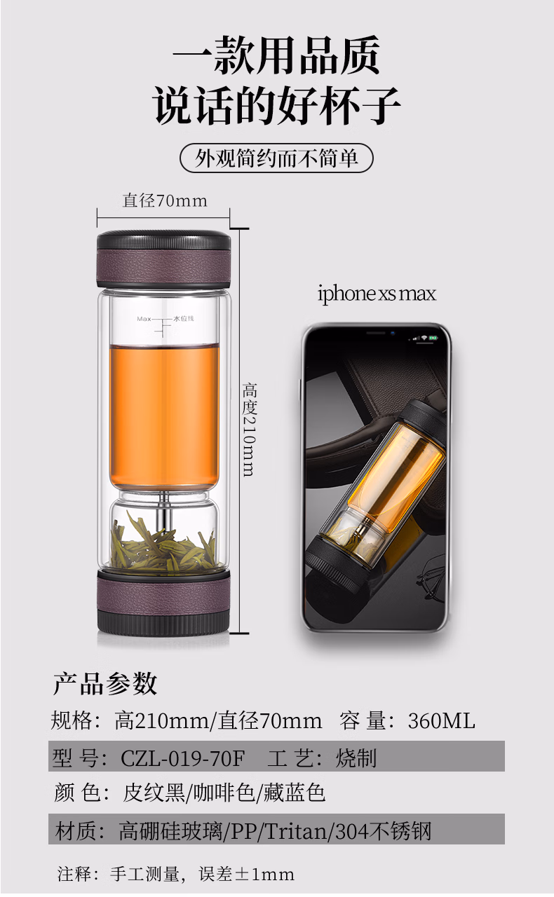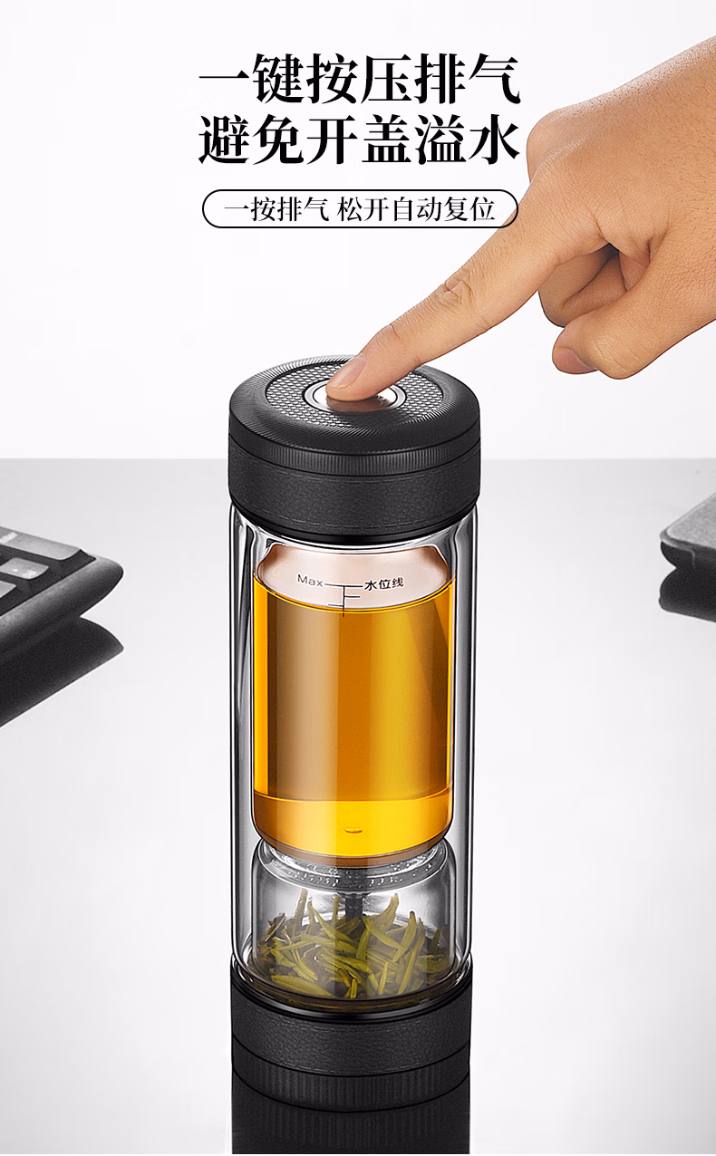 茶之恋 CZL-007-70X 380ml 茶水分离 便携 玻璃杯 (计价单位:个) 黑色