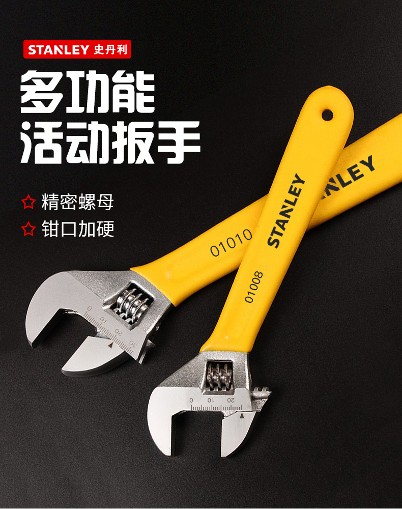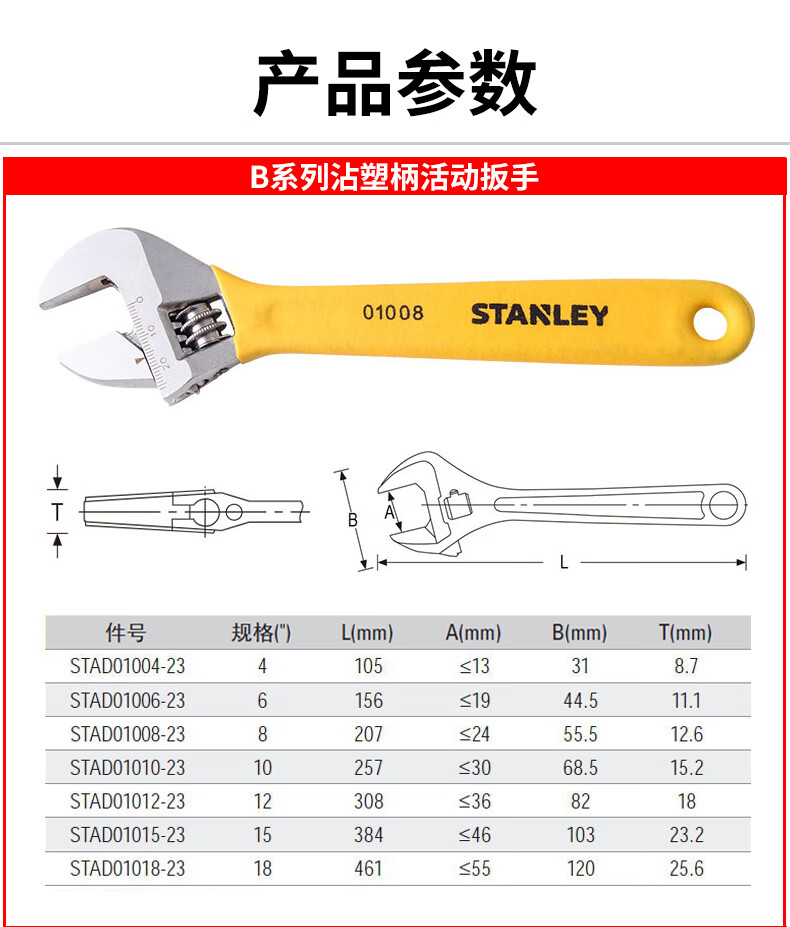 史丹利(STANLEY)B系列沾塑柄活动扳手活口扳手4英寸/100mm STAD01004-23 单位:把