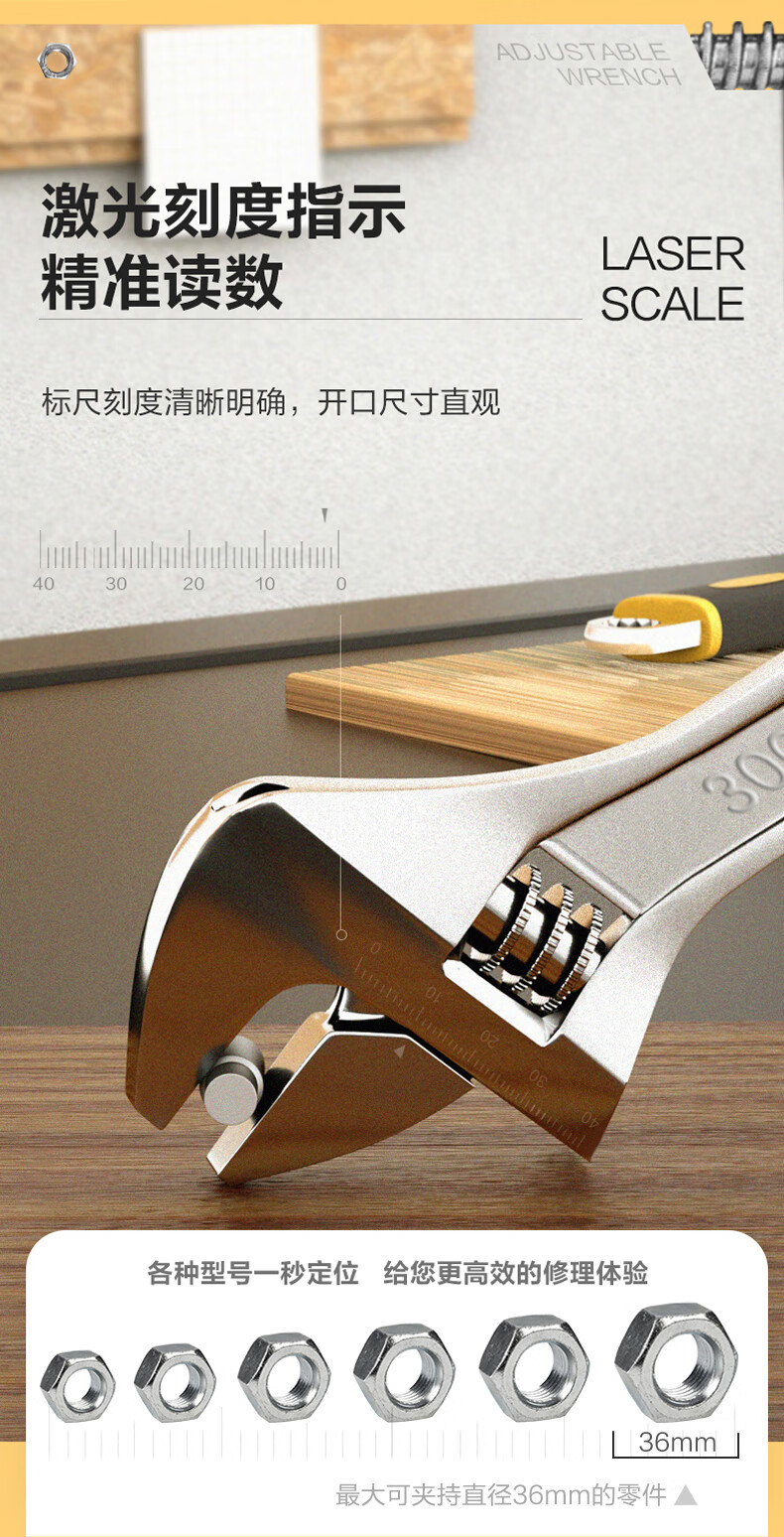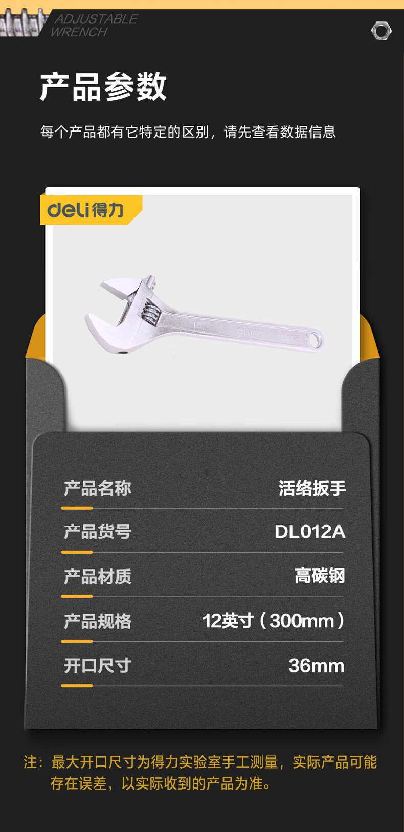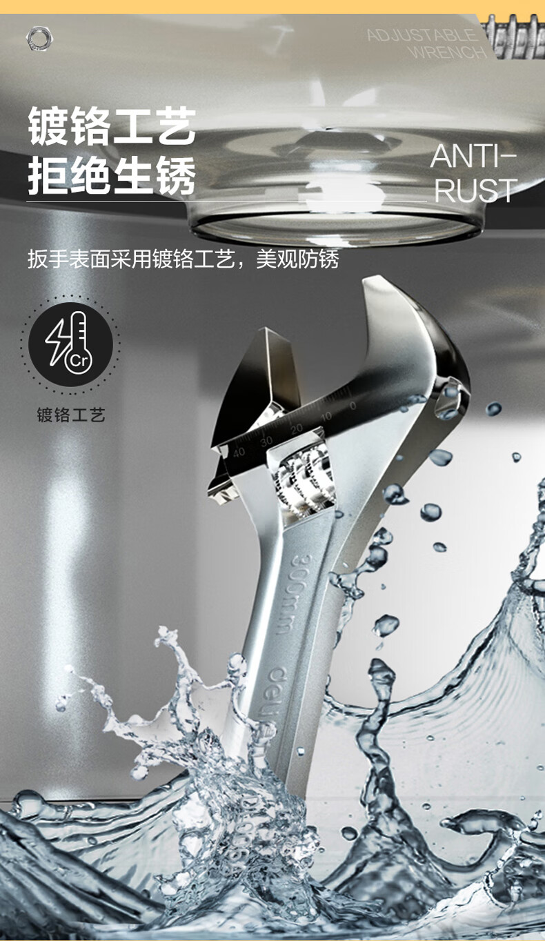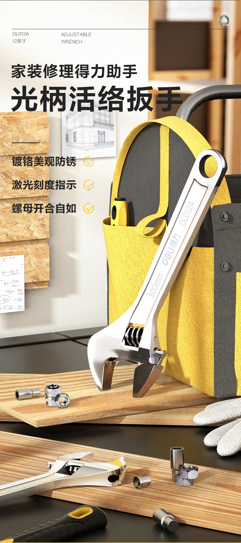 得力(deli)多功能活动扳手光柄开口活络扳手激光刻度12英寸 DL012A 单位:把