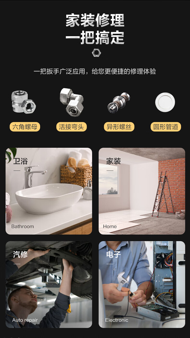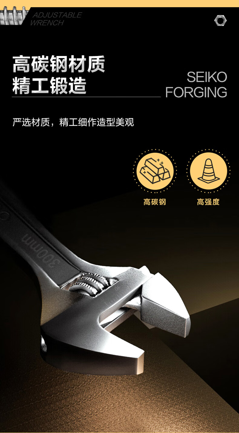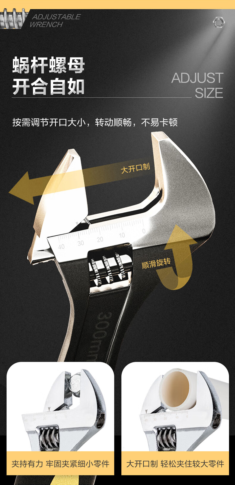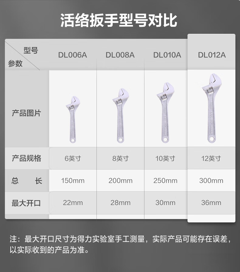得力(deli)多功能活动扳手光柄开口活络扳手激光刻度12英寸 DL012A 单位:把