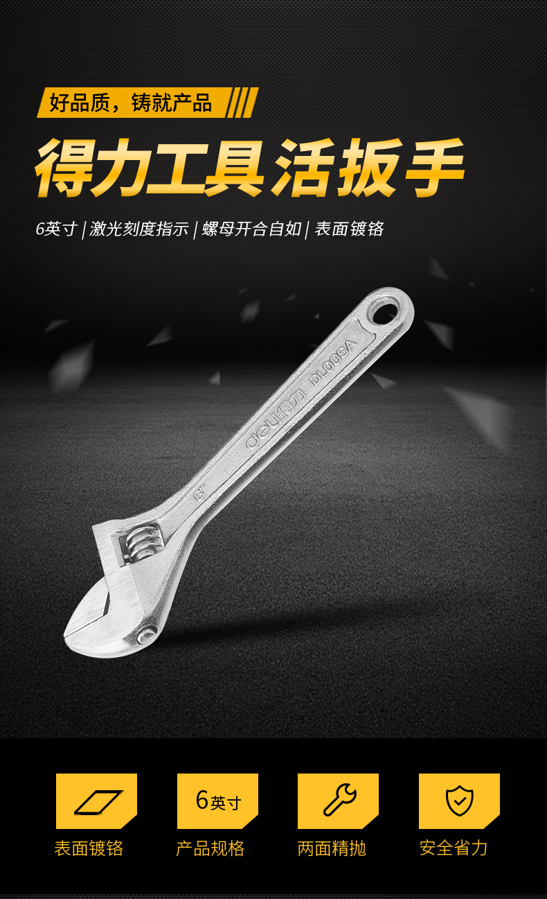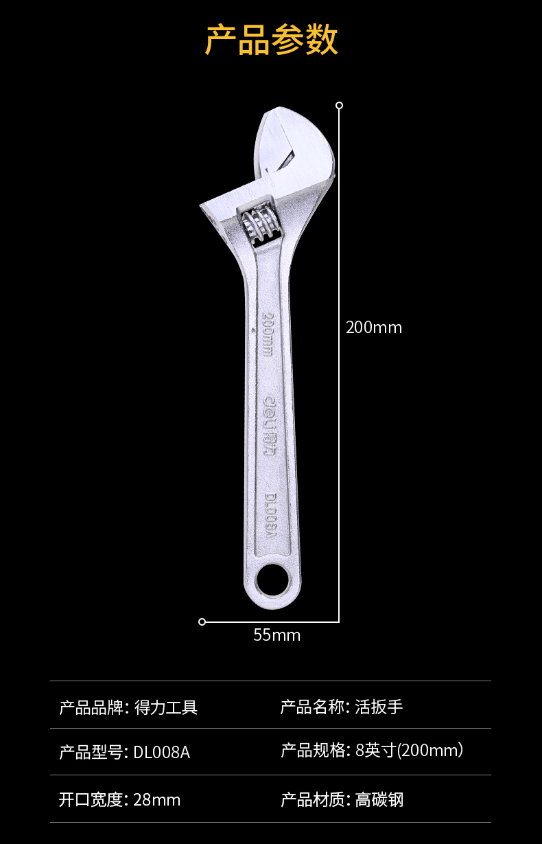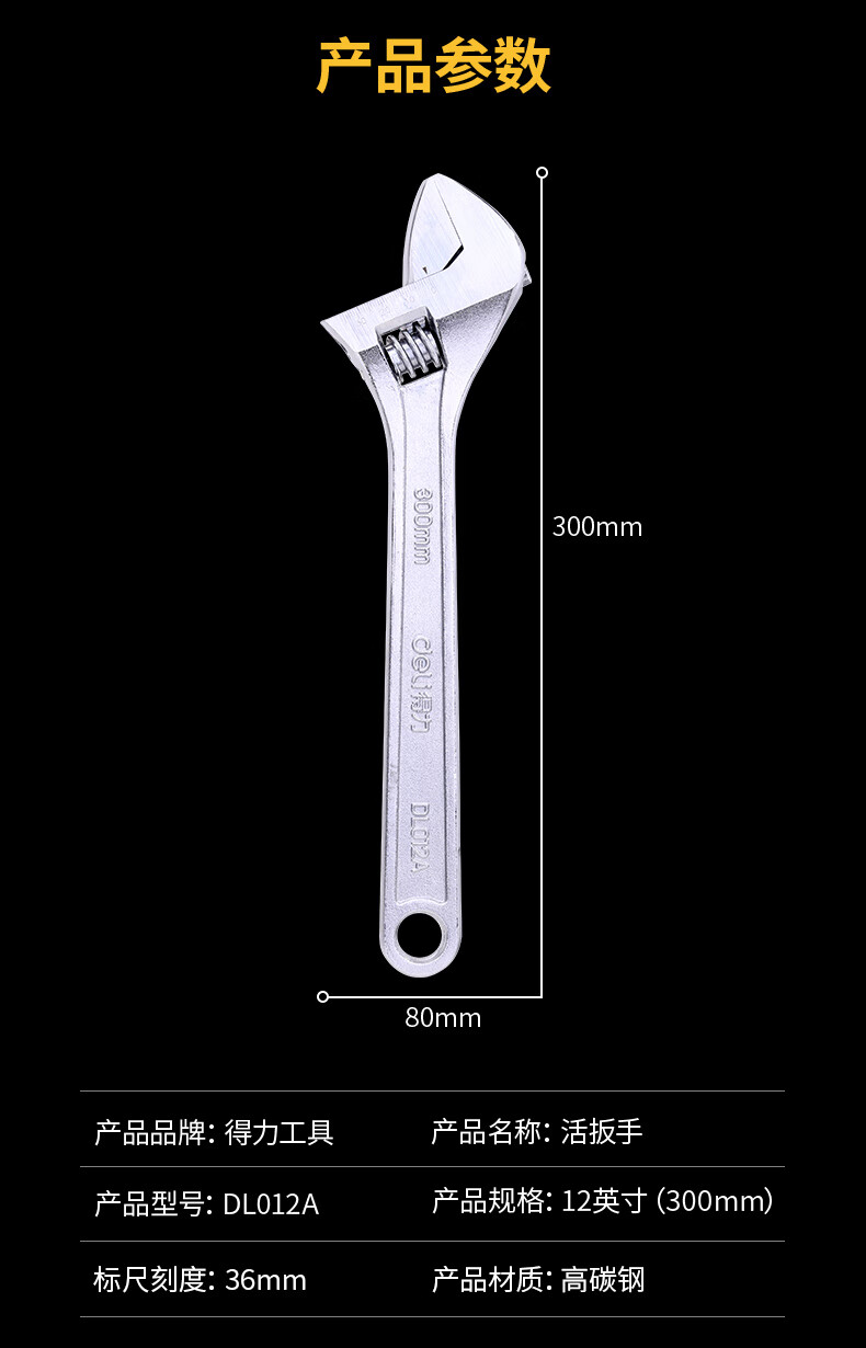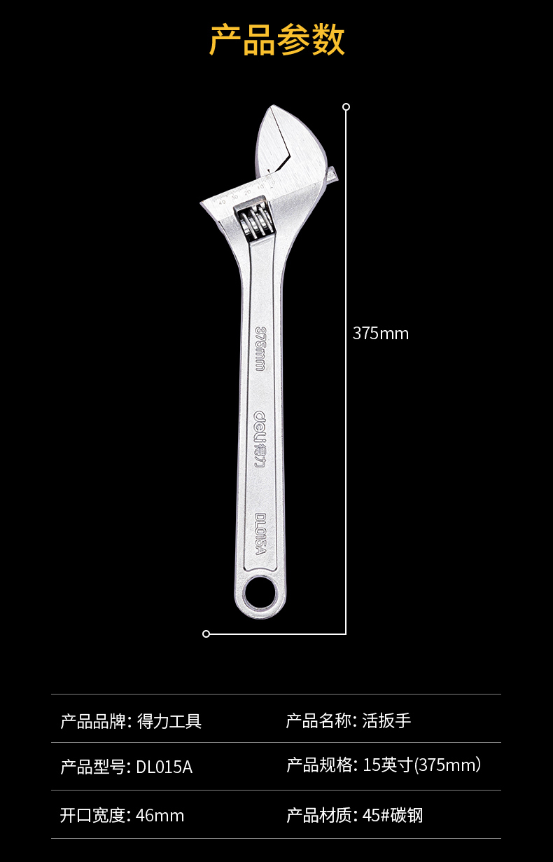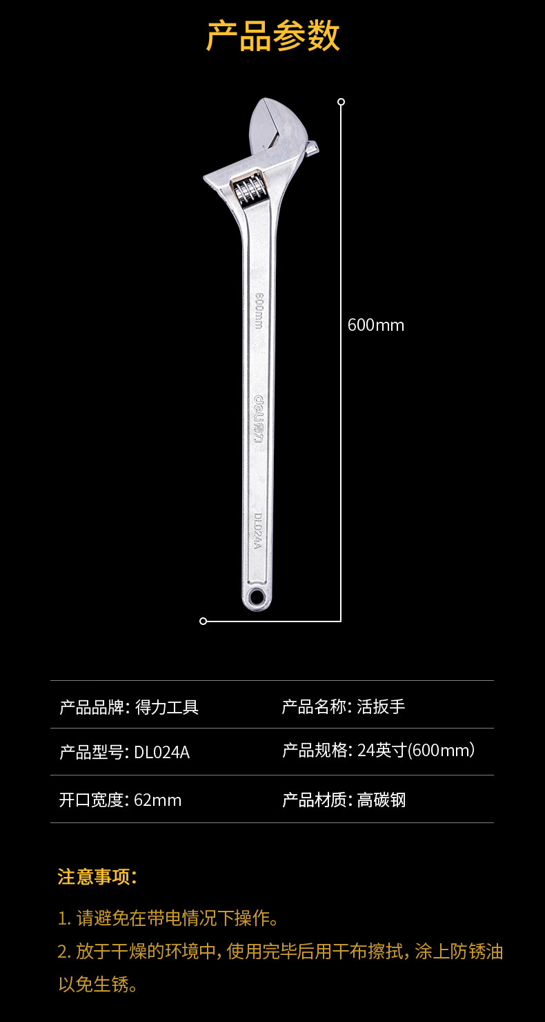 得力(deli) 多功能活动扳手光柄开口活络扳手激光刻度24英寸 DL024A 单位:把