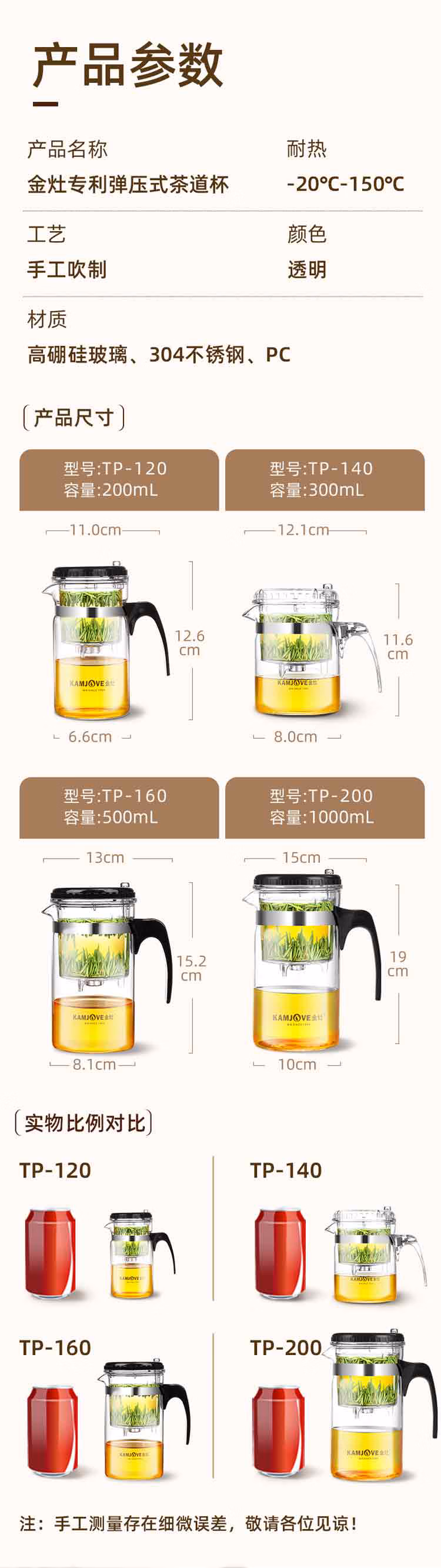 金灶(KAMJOVE) TP-140 飘逸杯 泡茶壶 玻璃茶具 (计价单位:套) 透明