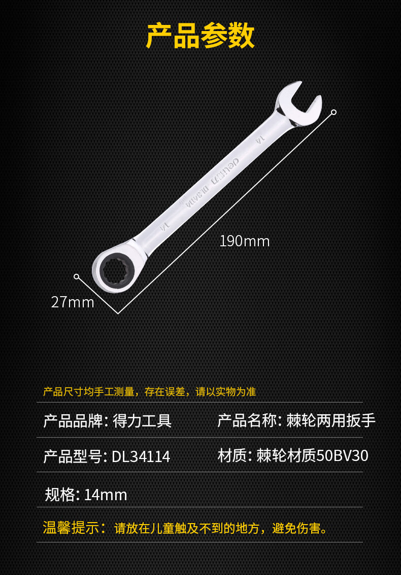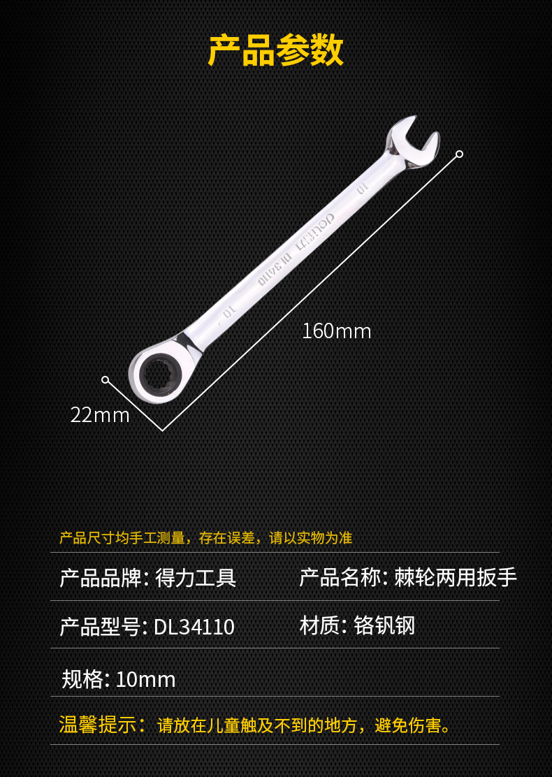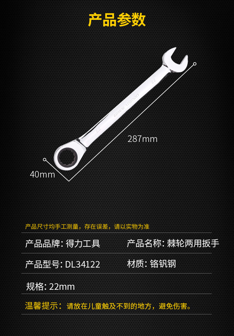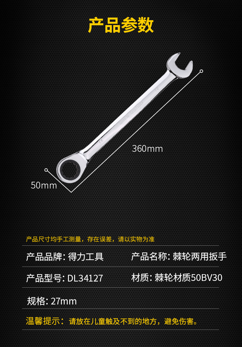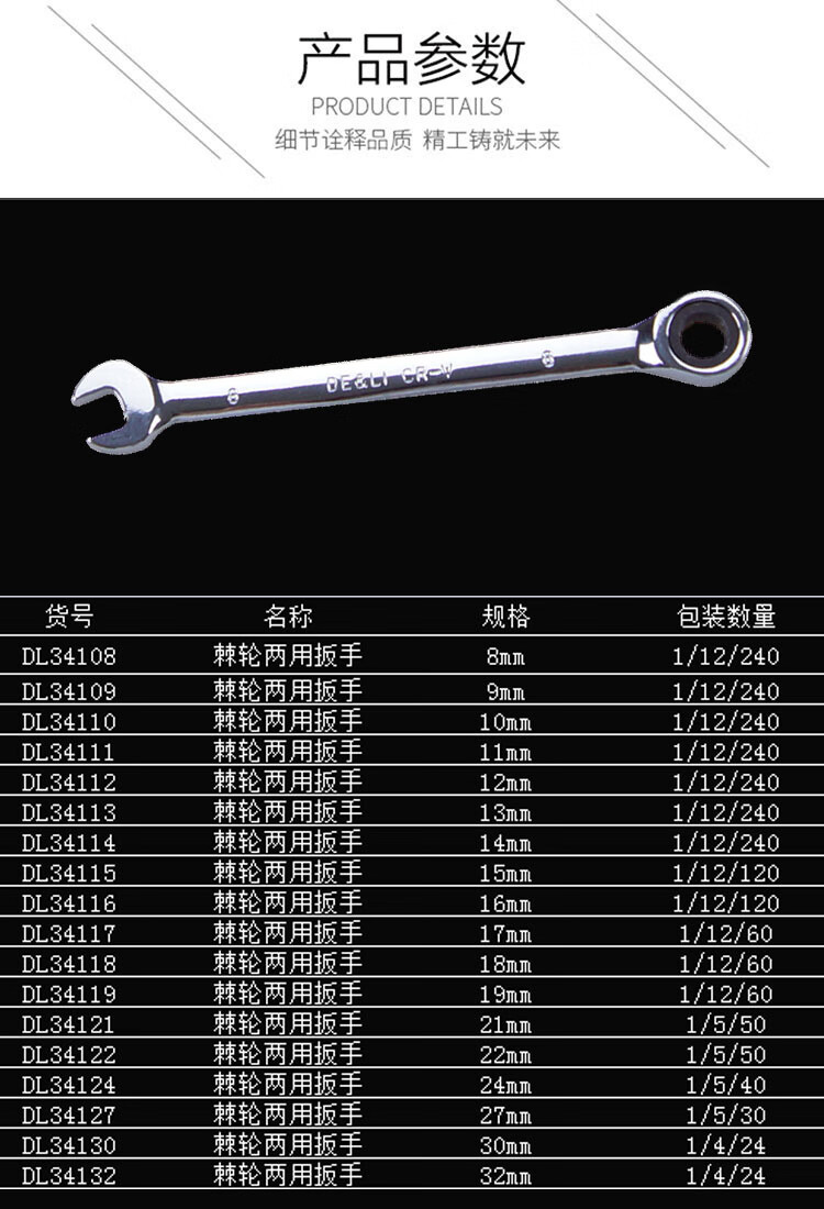 得力(deli) 快速梅花棘轮扳手多功能双向两用扳手开口扳手套装 27mm DL34127 单位:把