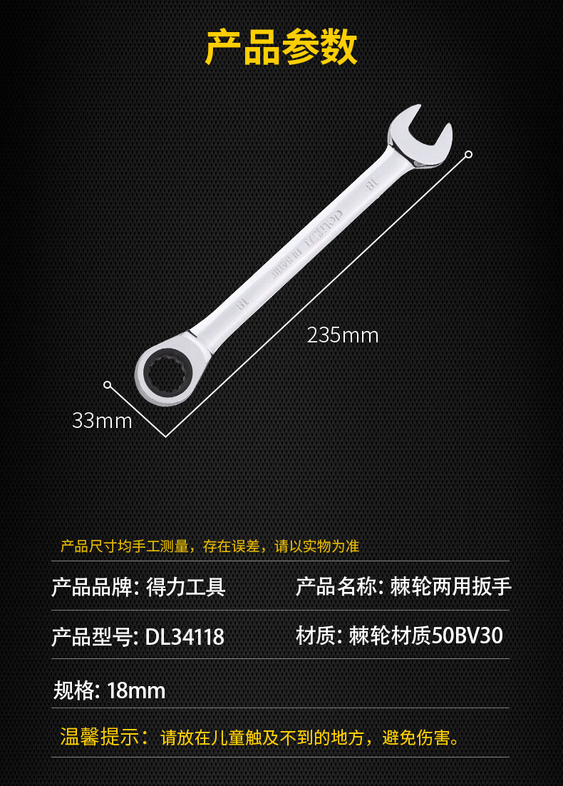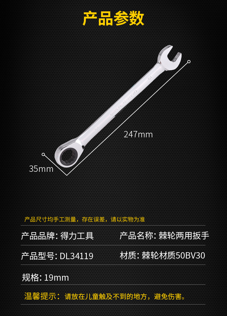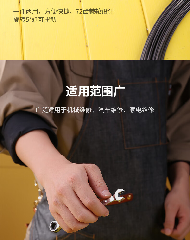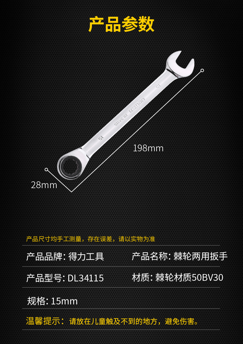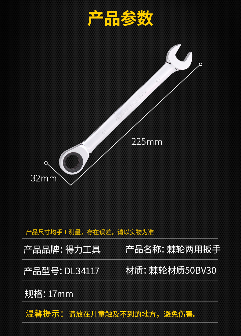 得力(deli) 快速梅花棘轮扳手多功能双向两用扳手开口扳手套装 27mm DL34127 单位:把
