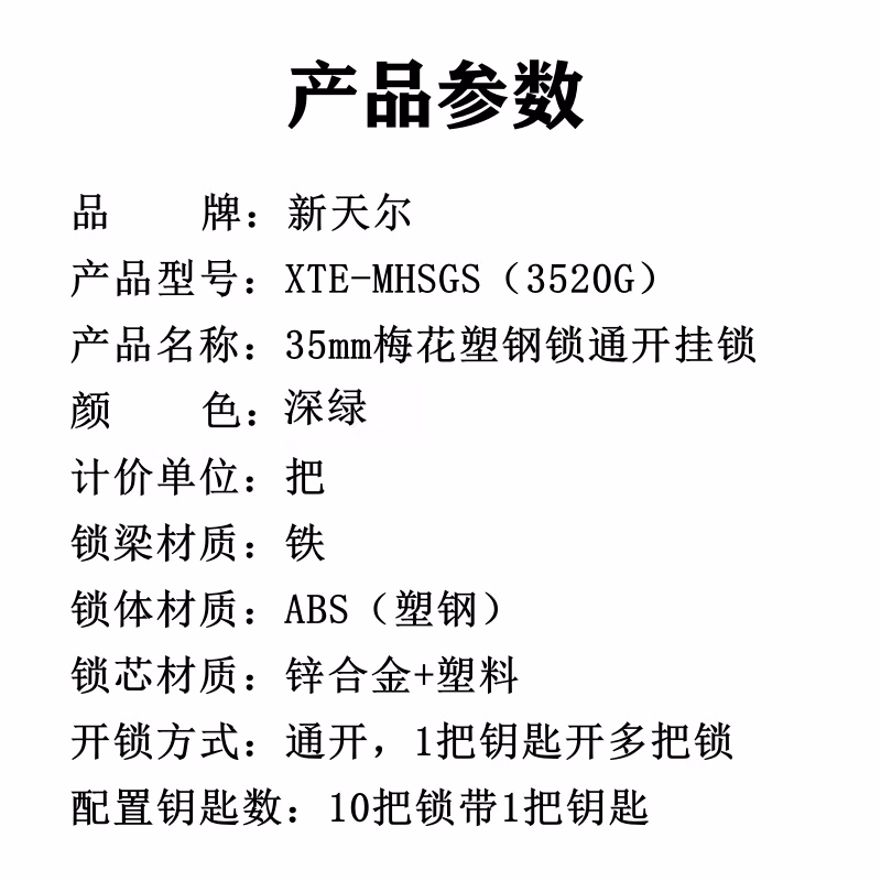 新天尔 XTE-MHSGS(3520G) 35mm 梅花塑钢 挂锁 (计价单位:个) 绿色
