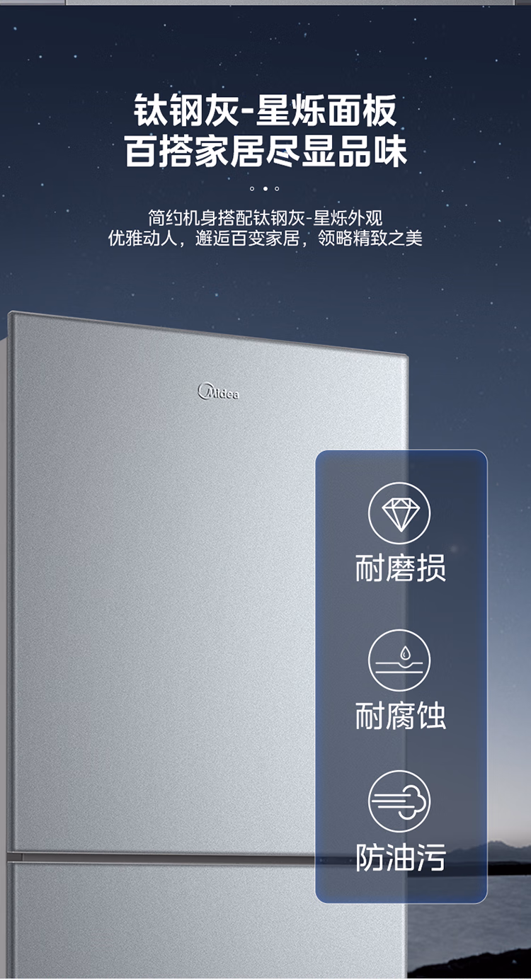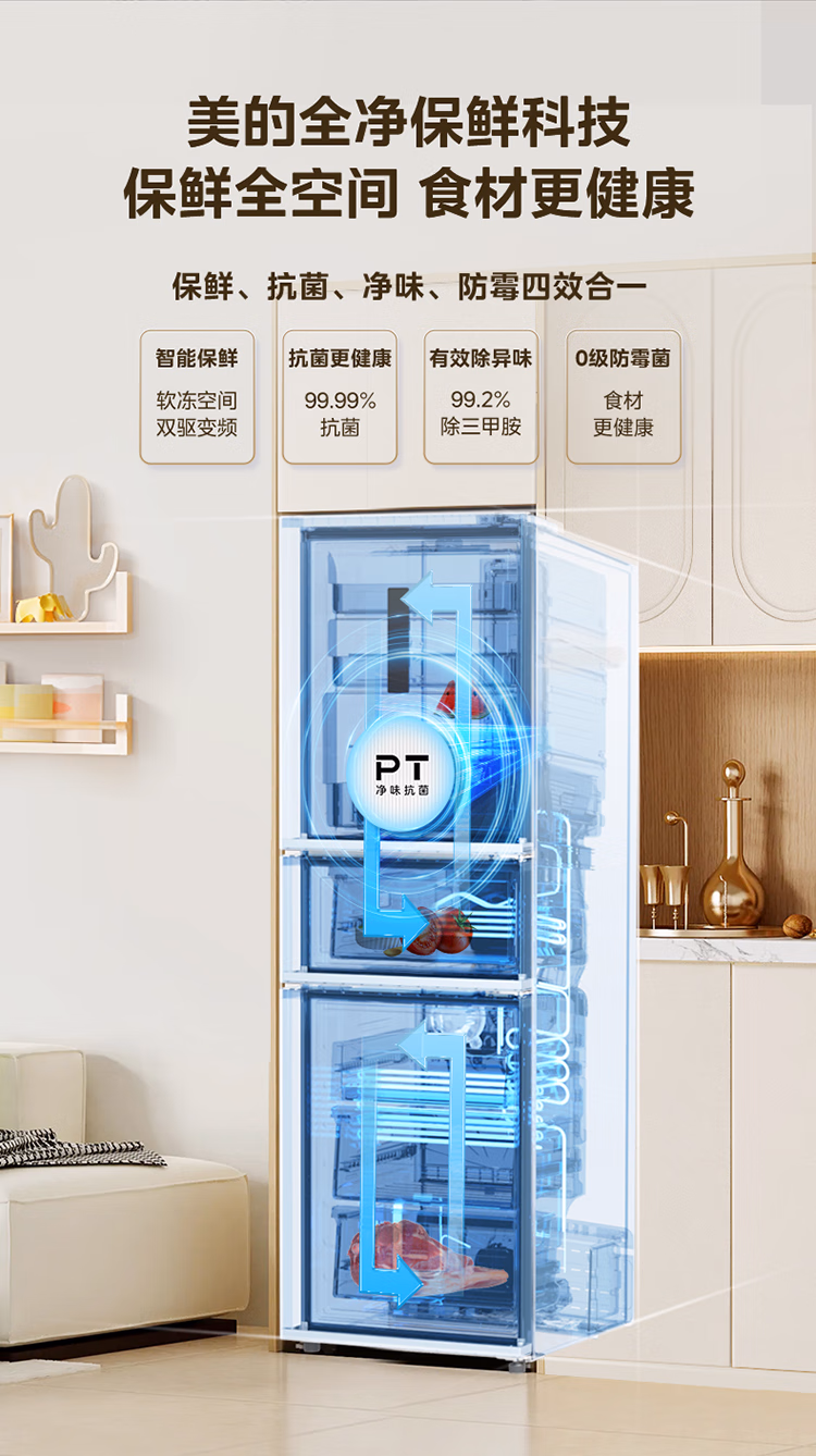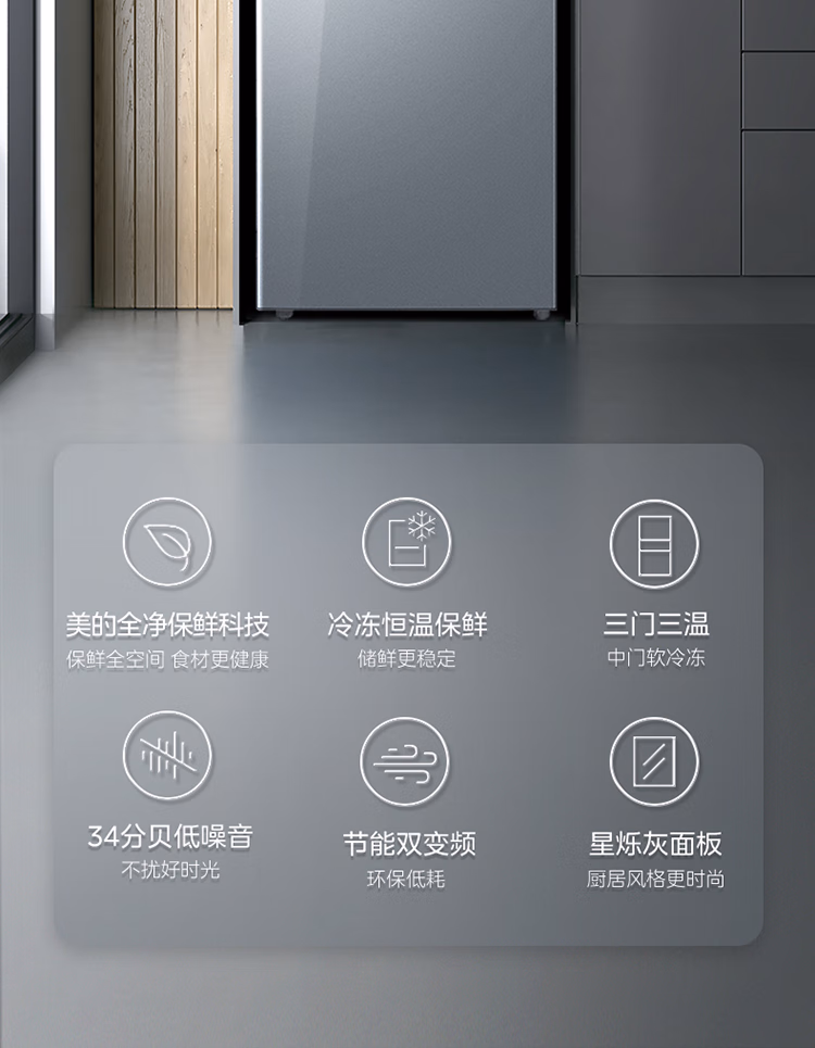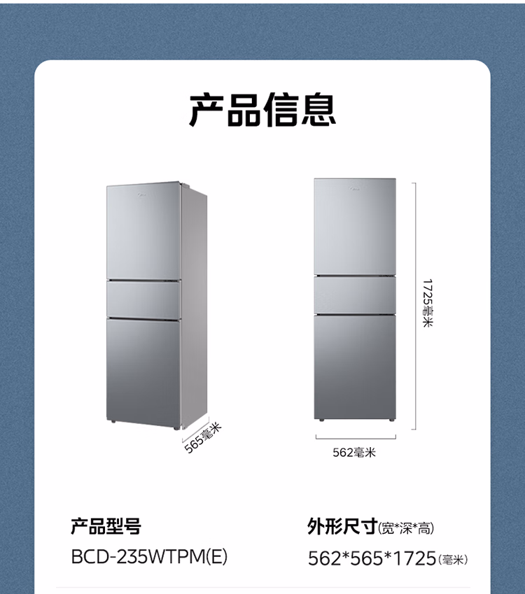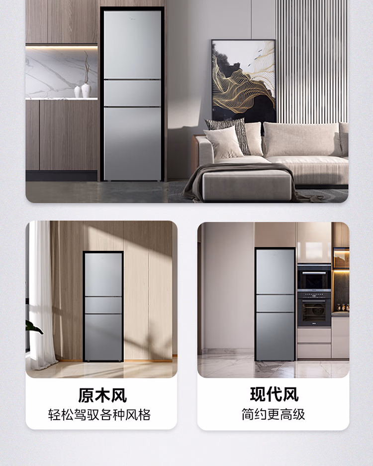 美的(Midea) BCD-235WTPM(E) 235升 风冷变频 二级能效 三门 电冰箱 (计价单位:台) 星硕灰