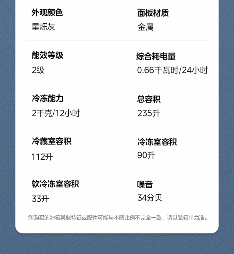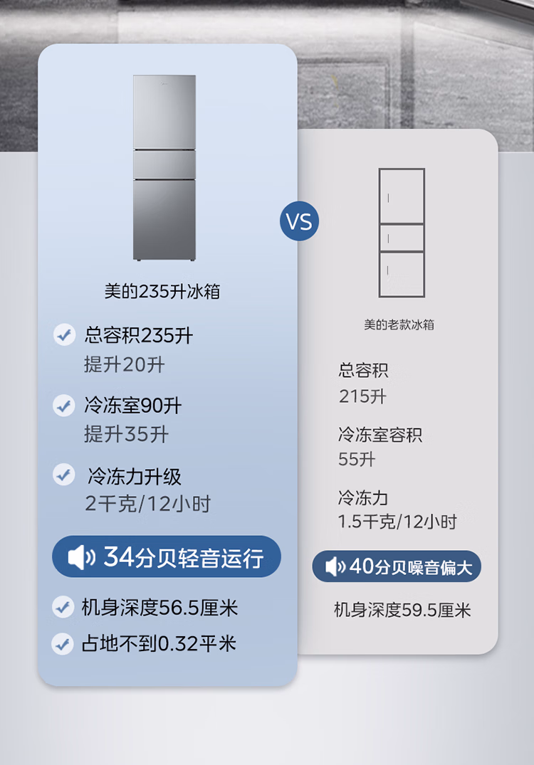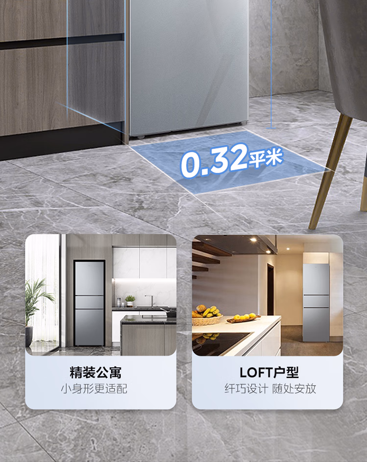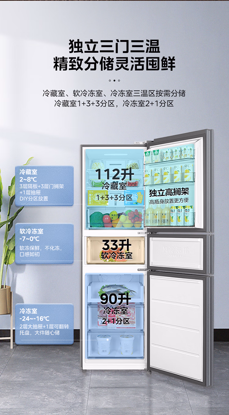 美的(Midea) BCD-235WTPM(E) 235升 风冷变频 二级能效 三门 电冰箱 (计价单位:台) 星硕灰
