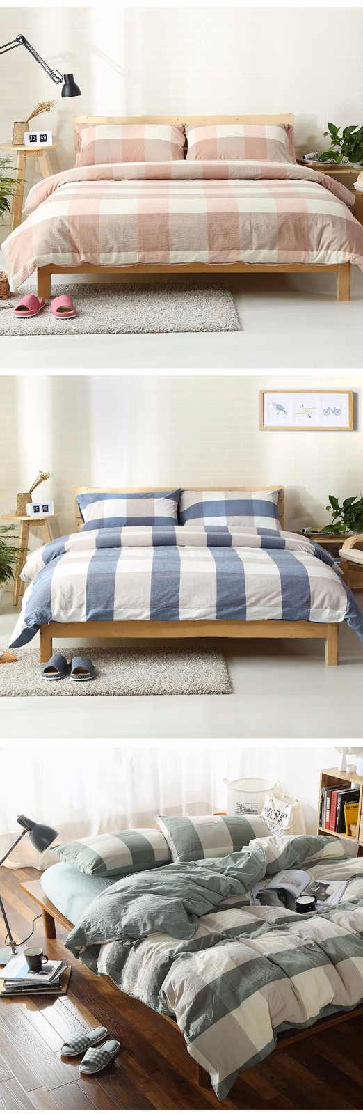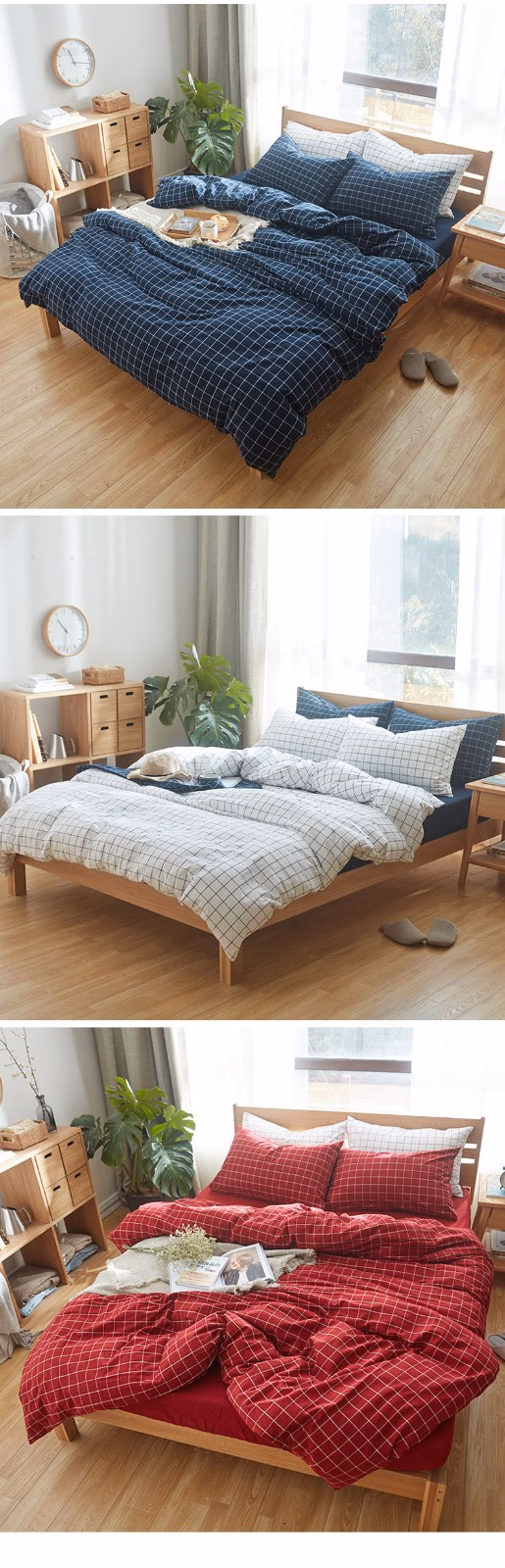 三极户外(Tri-Polar) TP2980 1.5M(床笠款)日式纯棉无印风格水洗棉格子 四件套 (计价单位:套) 晚秋格