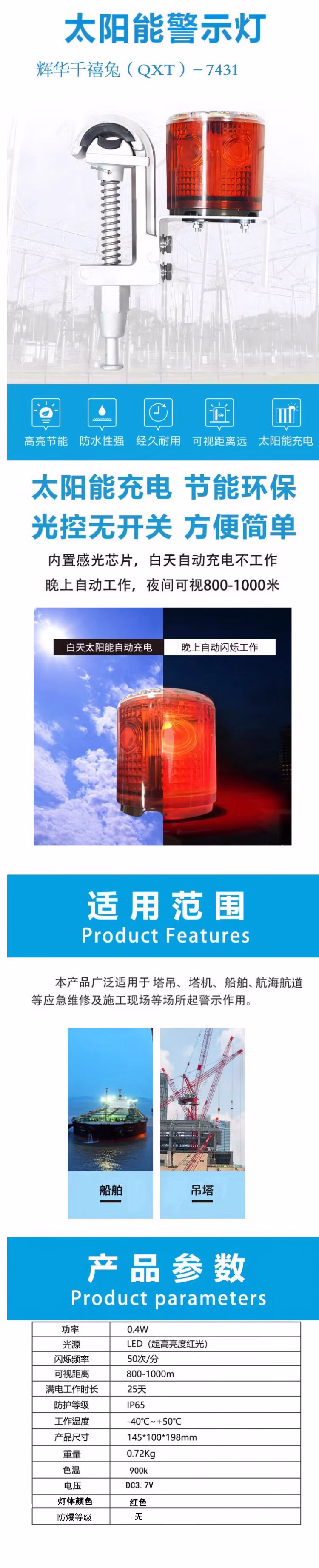 辉华千禧兔 HHQXT-7431 DC3.7V LED IP65 0.4W太阳能 警示灯 1.00 盏/套 (计价单位:套) 红色