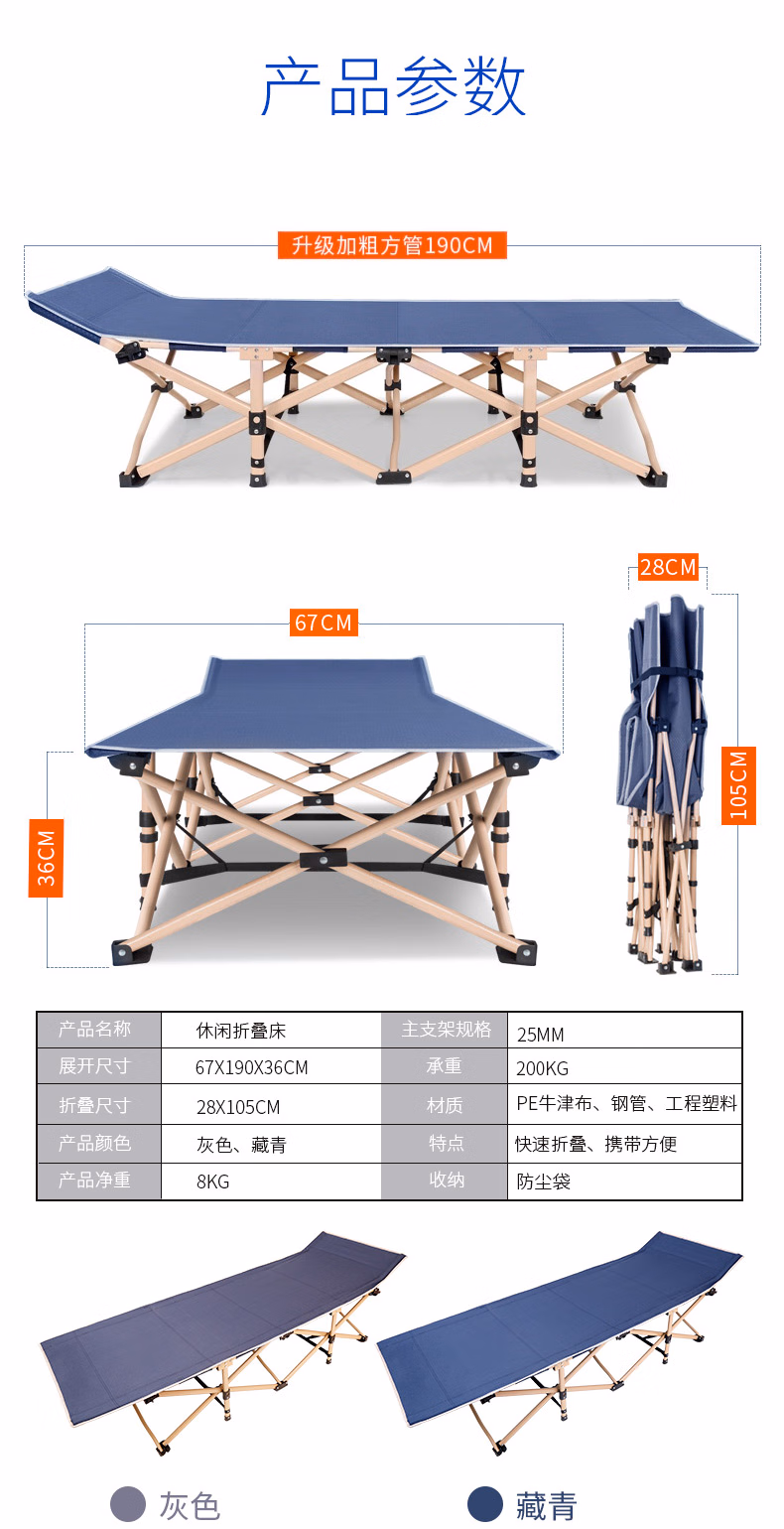 三极户外(Tri-Polar) TP1008 折叠床办公室午休床加垫 190x67x36cm 午休椅 (计价单位:把) 藏青色