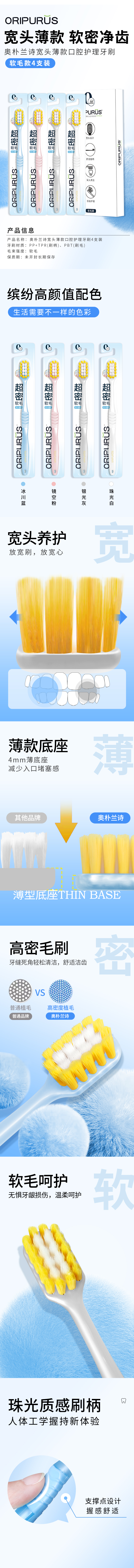 奥朴兰诗 4支装 宽头薄款口腔护理牙刷 软毛款 牙刷 4.00 支/卡 (计价单位:卡)