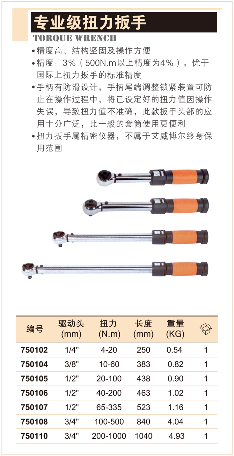 艾威博尔(EVER POWER)750102 1/4专业级扭力扳手4-20 单位:把