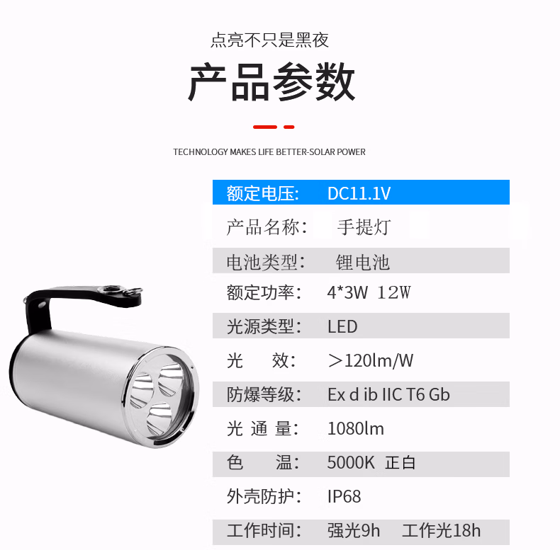 旭升(CXS) CBST 4*3W IP68 Ex d ib IIC T6 Gb 强光9h 工作光18h DC11.1V 白光 色温5000K 手提式防爆探照灯 (计价单位:盏) 白色