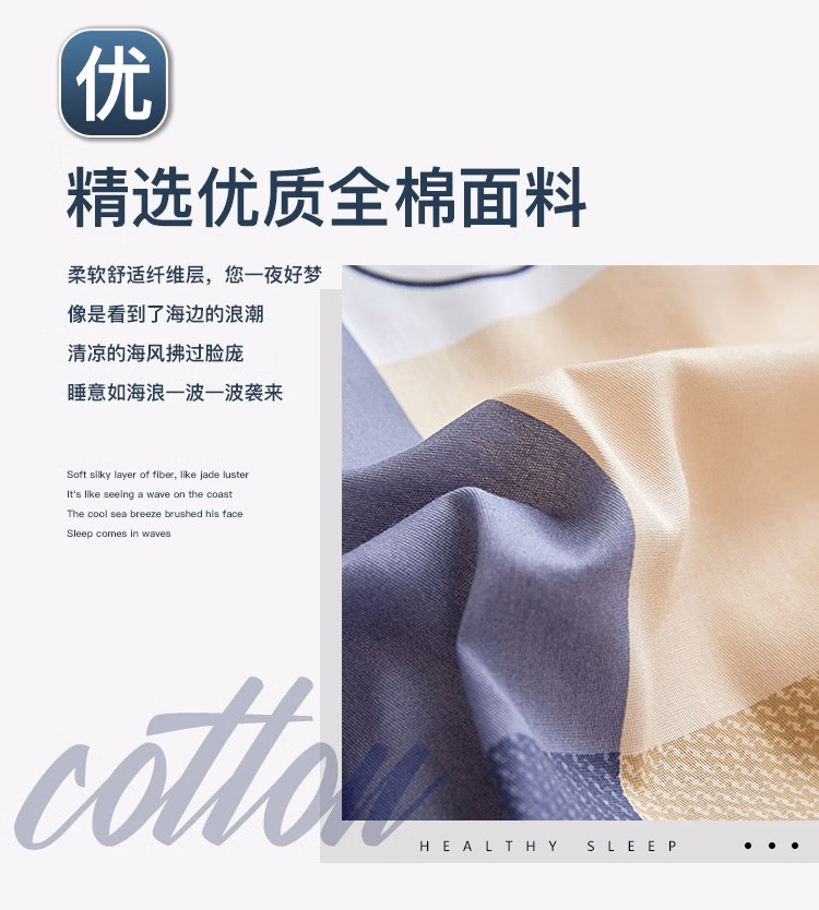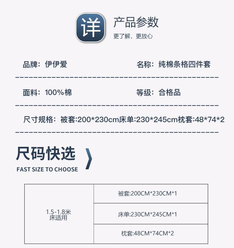 伊伊爱 TJ0NH02201492 /200*230cm纯棉条纹格子四件套 床上套件 (计价单位:套) 幽若格