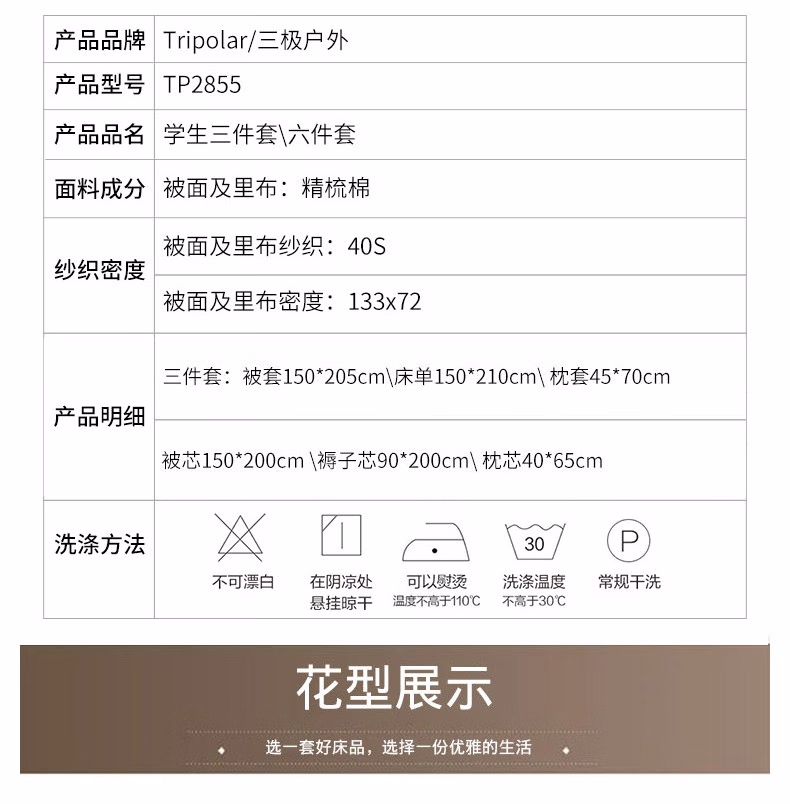 三极户外(Tri-Polar) TP2855 150*205cm 新疆长绒棉被芯+40纱织全棉被罩 学生格 被子 (计价单位:件) 学生格