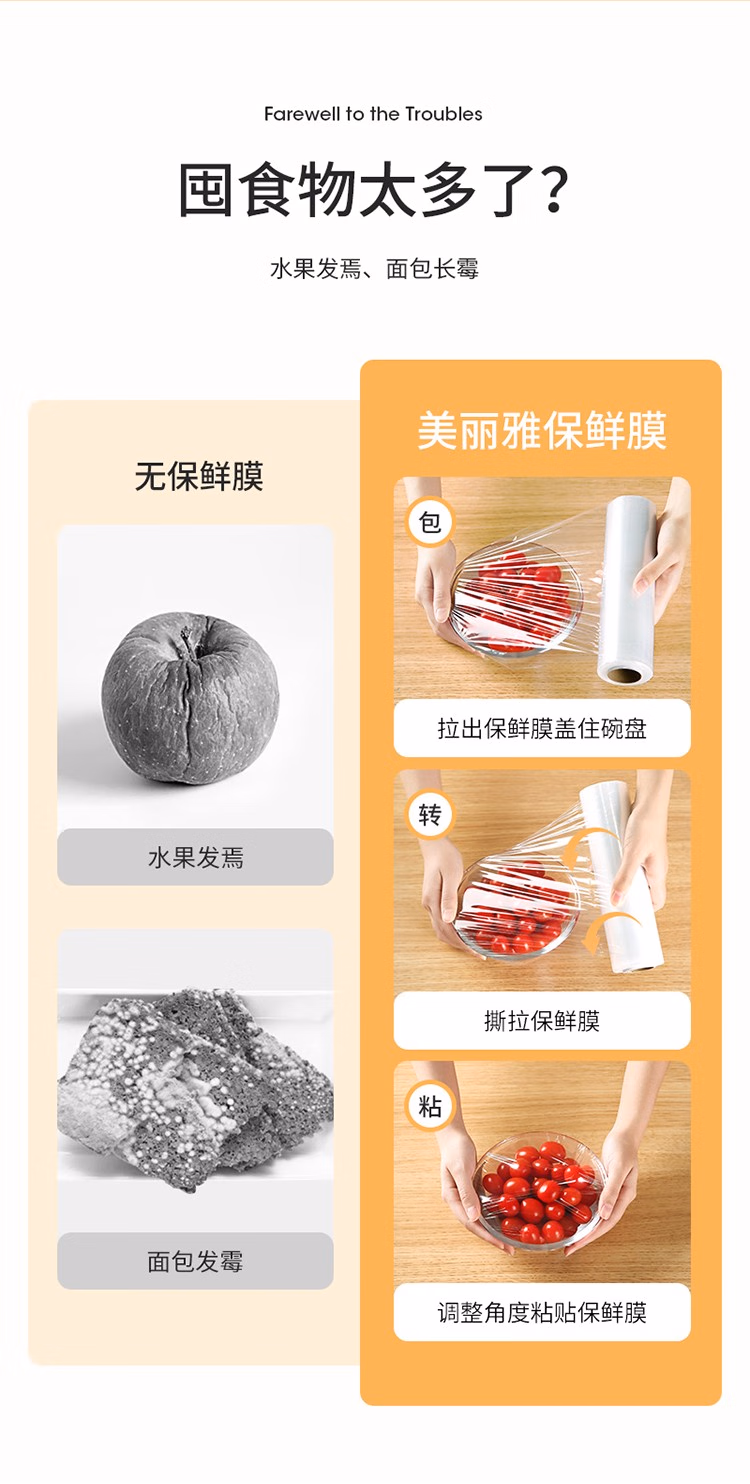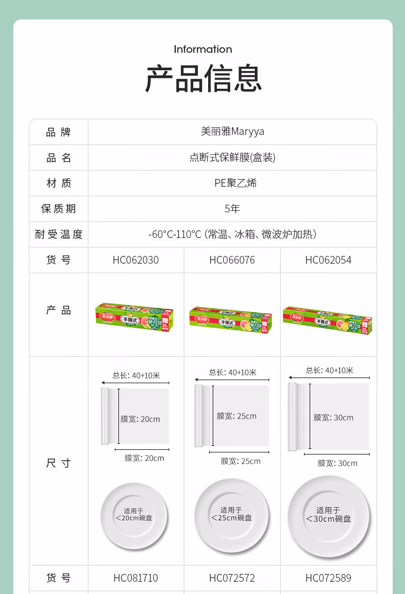 美丽雅(MARYYA) HC072589 手撕保鲜膜30CM*150米 1.00 个/卷 (计价单位:卷) 透明