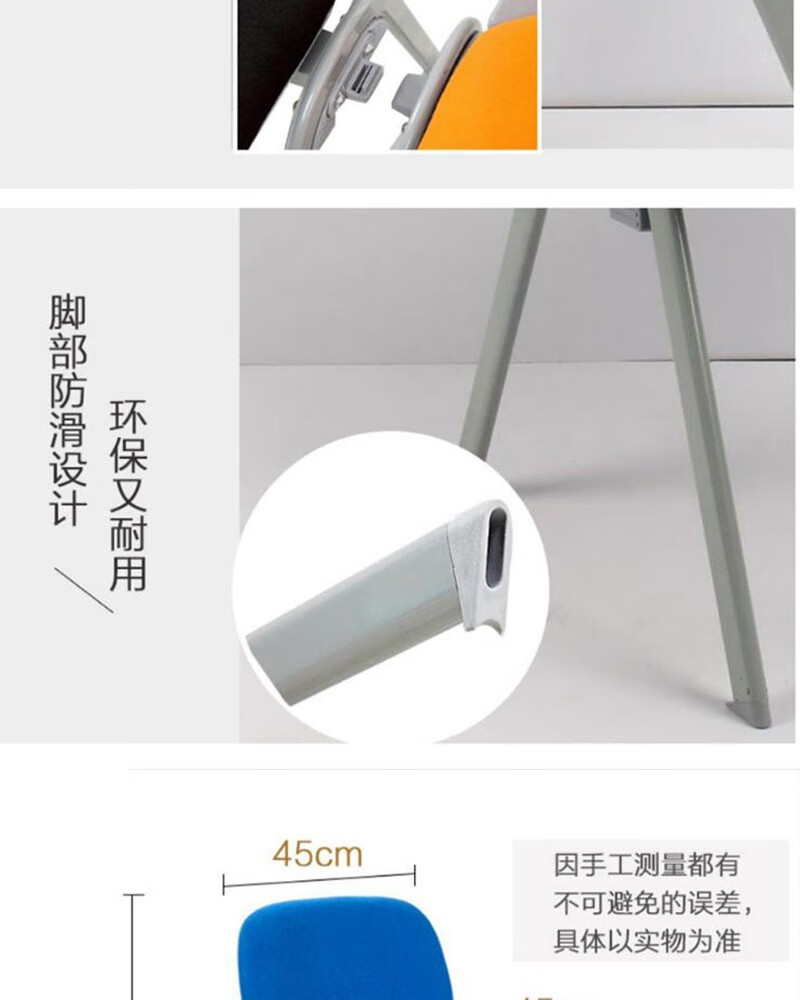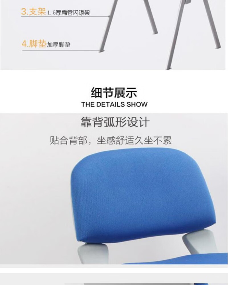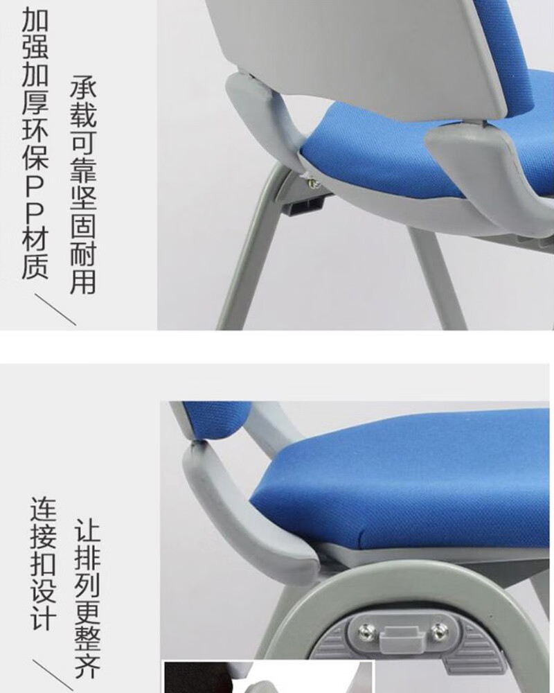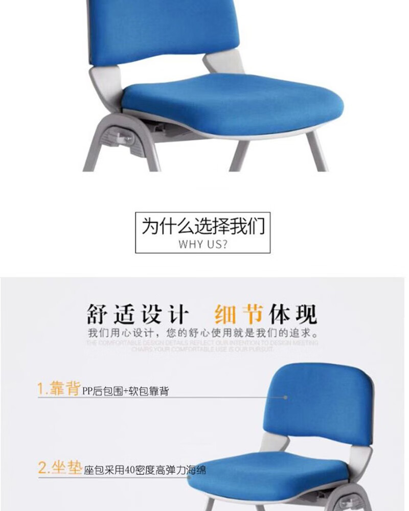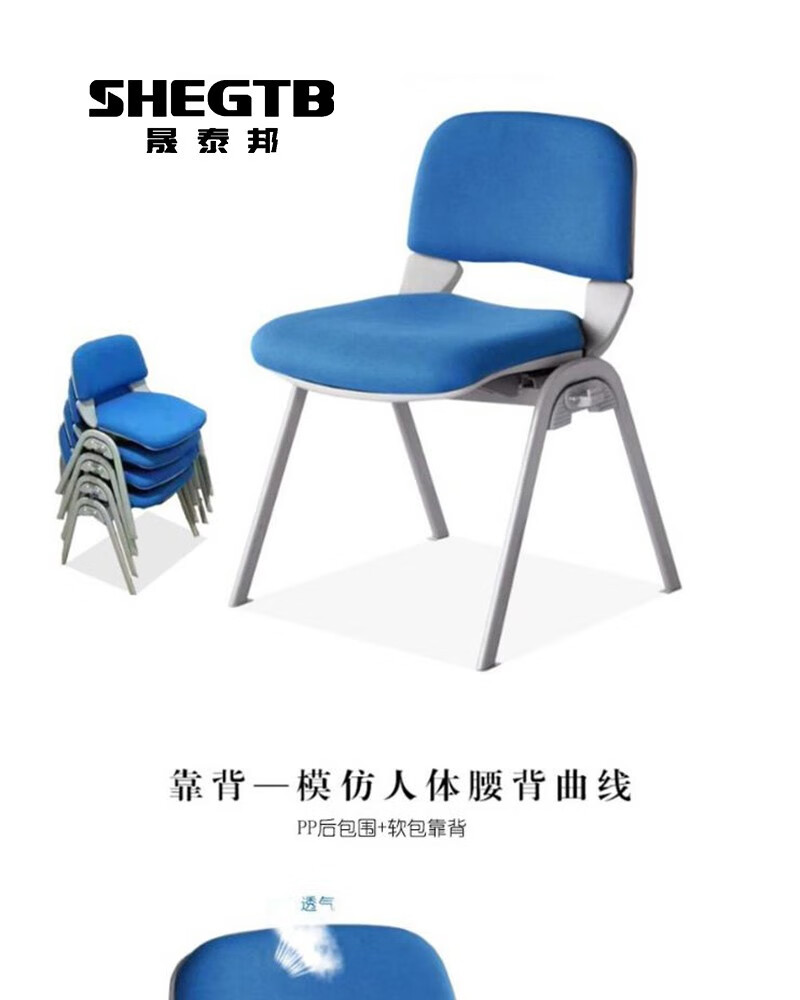 晟泰邦 时尚简约塑料培训椅堆叠记者职员办公椅会议椅子 蓝色软包靠背 单位:张