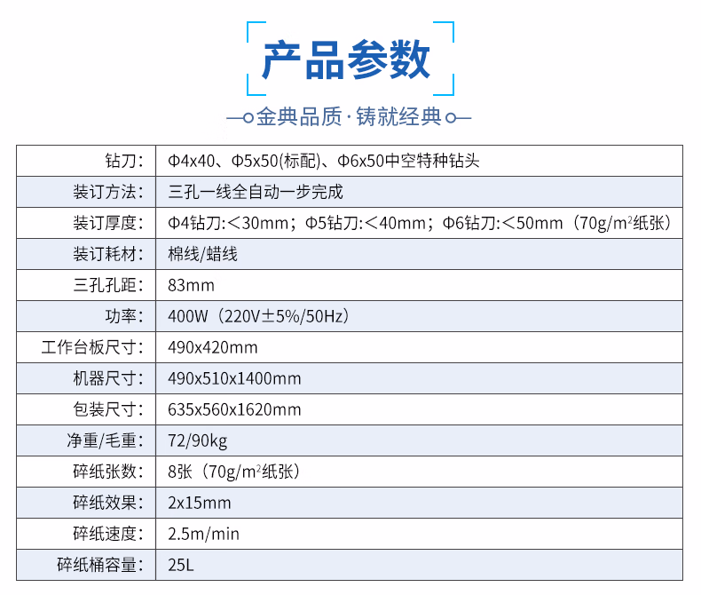 • 装订方式:全自动