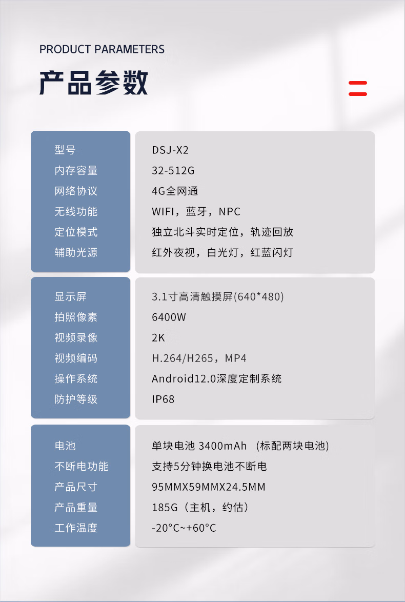 执法专家 DSJ-X2 H.265 265压缩4G实时定位回传现场高清指挥记录仪 512G 摄像记录仪 (计价单位:台) 黑色
