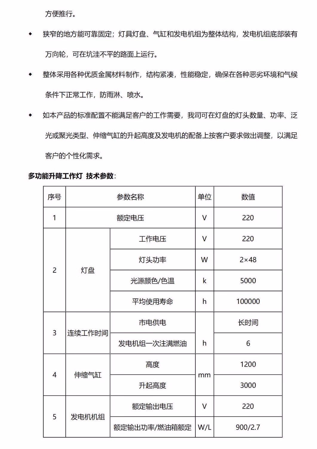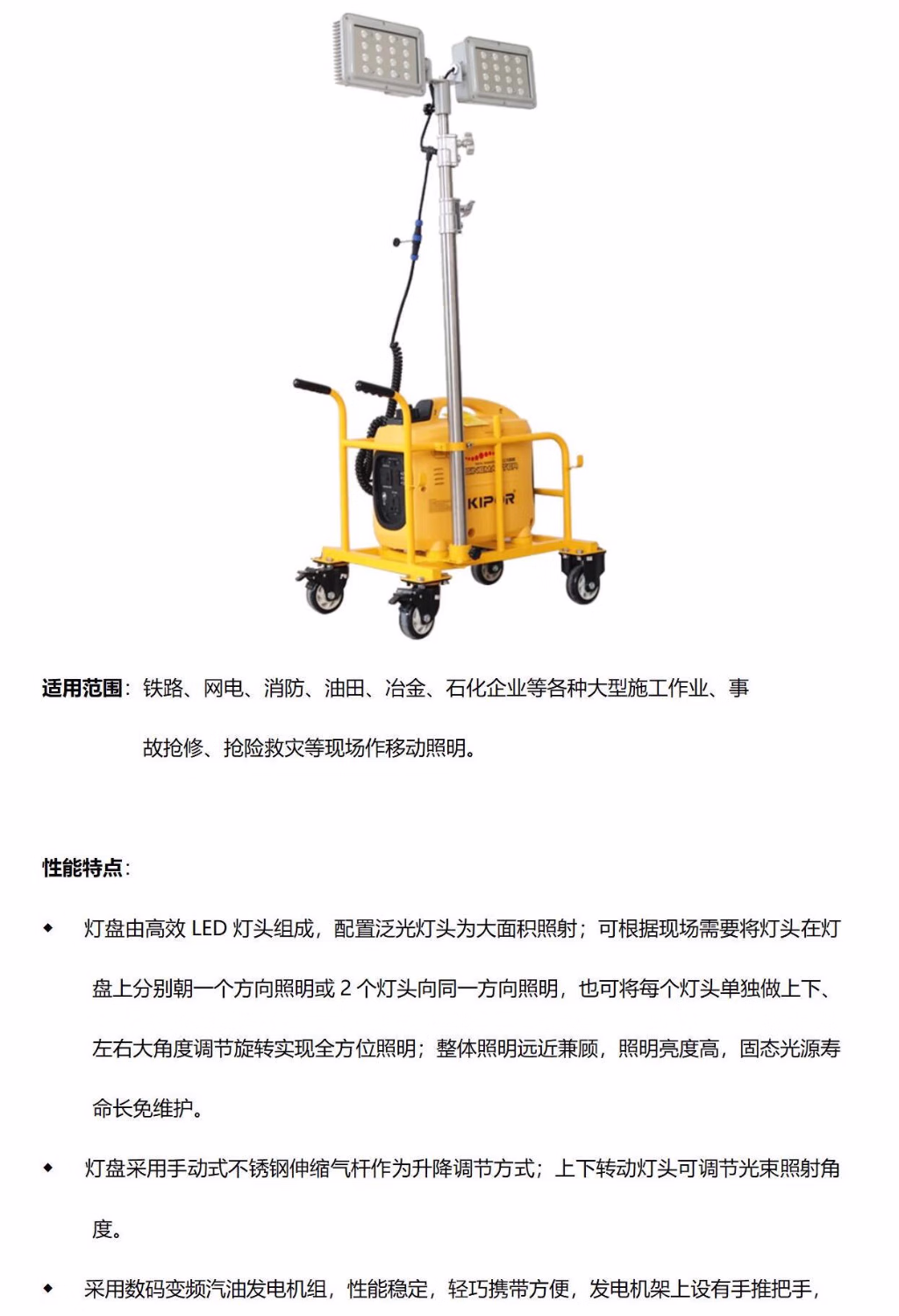 熠飞(EEEFEI) EF1094 2×48W IP65 续航时间:注满燃油6h 220V 5000K LED 多功能升降工作灯 (计价单位:台) 黄色