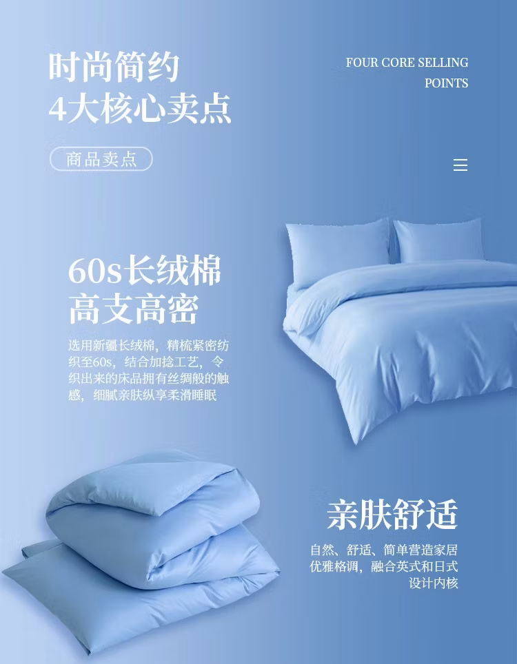 伊伊爱 TJ0SZ02201469 /200*230cm纯色纯棉空气缎四件套 床上套件 (计价单位:套) 天空蓝