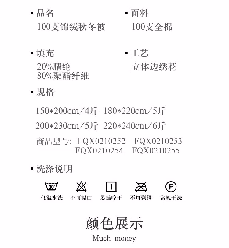 弗切尔珀榕 FQX0210252 150*200cm 德绒保暖锦绒秋冬被 (计价单位:件) 德绒白