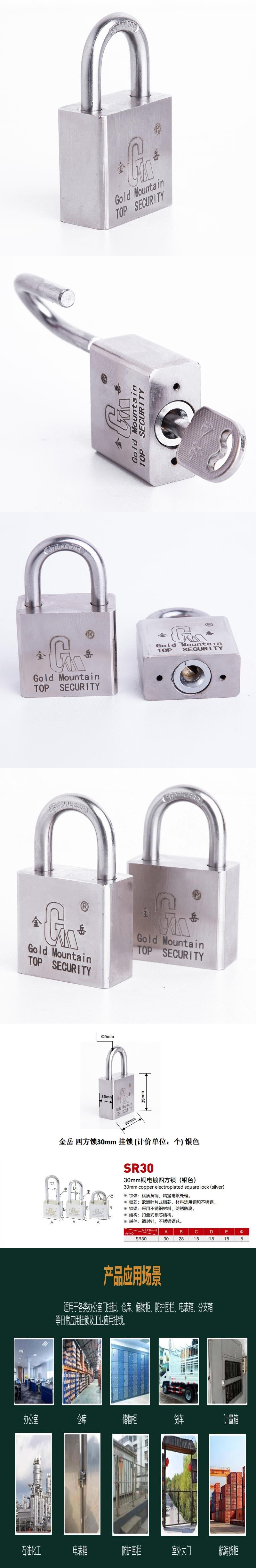 金岳 四方锁30mm 挂锁 (计价单位:个) 银色