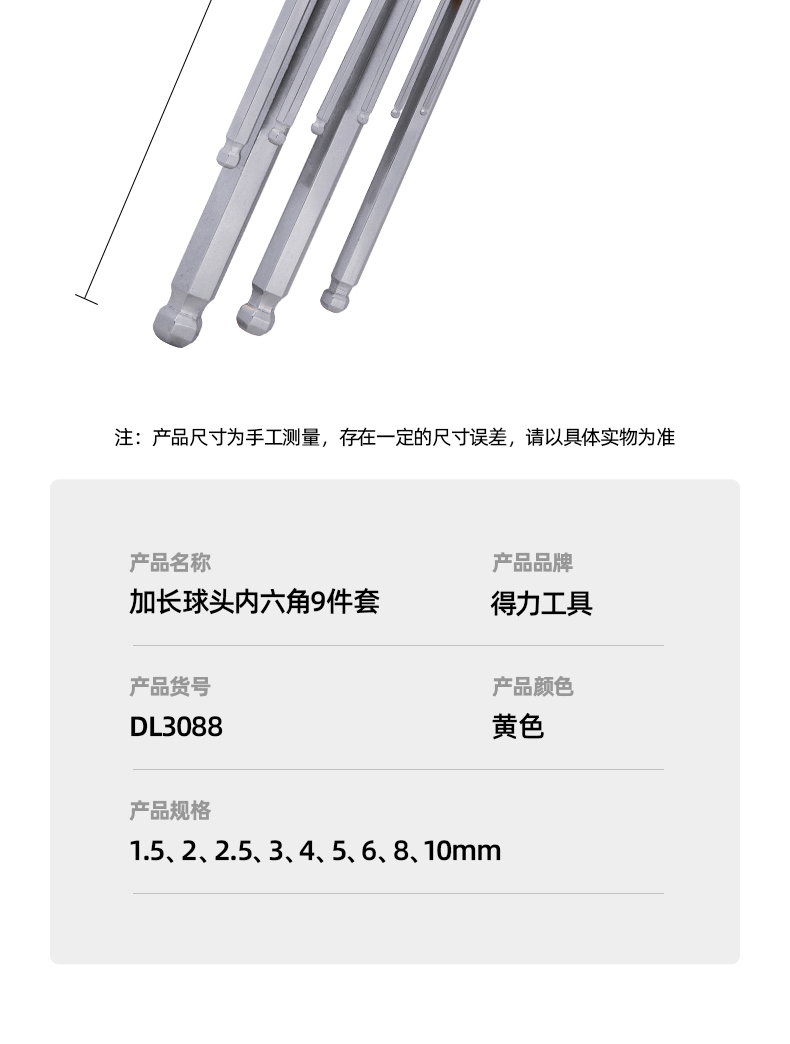 得力(deli)内六角扳手套装六边形六棱角扳手组合9件套装 DL3088 单位:套