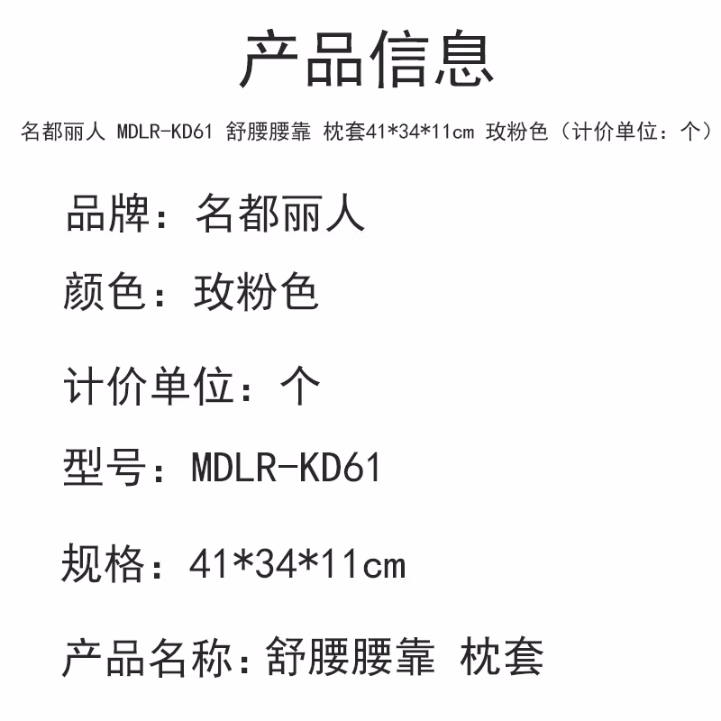 名都丽人 MDLR-KD61 舒腰腰靠 枕套41*34*11cm 靠垫 (计价单位:件) 玫粉色