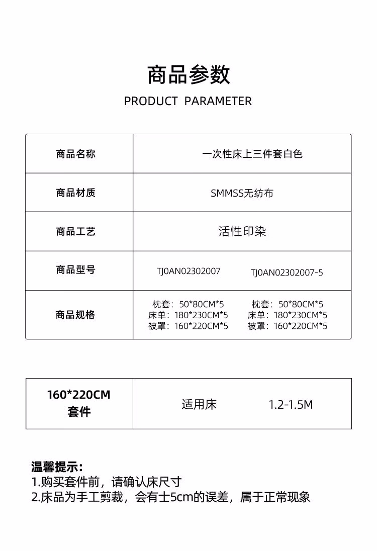 伊伊爱 TJ0AN02302007 /180*230cm 一次性床上三件套 (计价单位:套) 白色