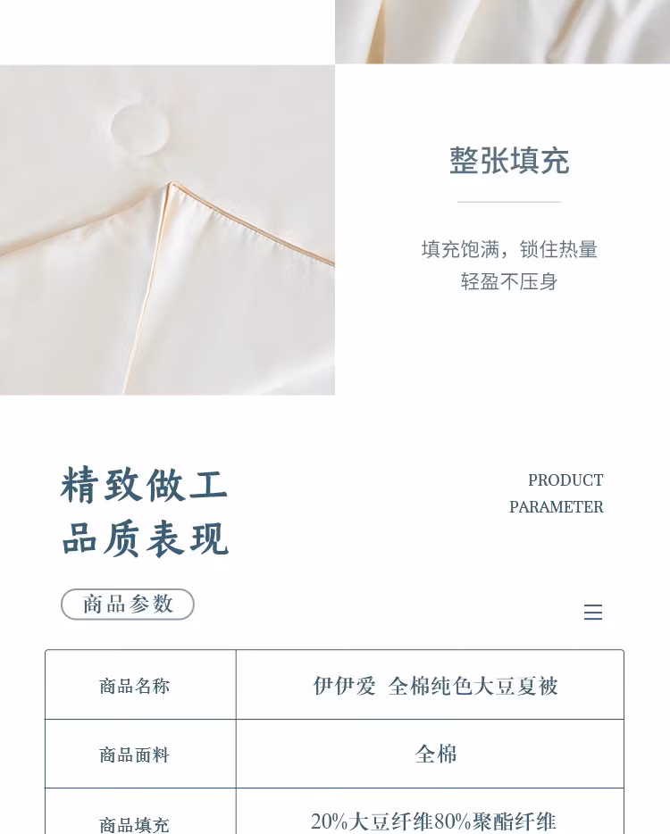 • 填充物成分:涤纶(聚酯纤维),大豆蛋白纤维(大豆纤维)