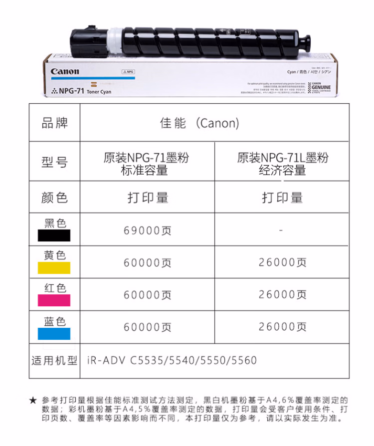 佳能(Canon) NPG-71 M 60000页 适用于iR-ADV C5535 5540 墨粉盒 (计价单位:只) 红色