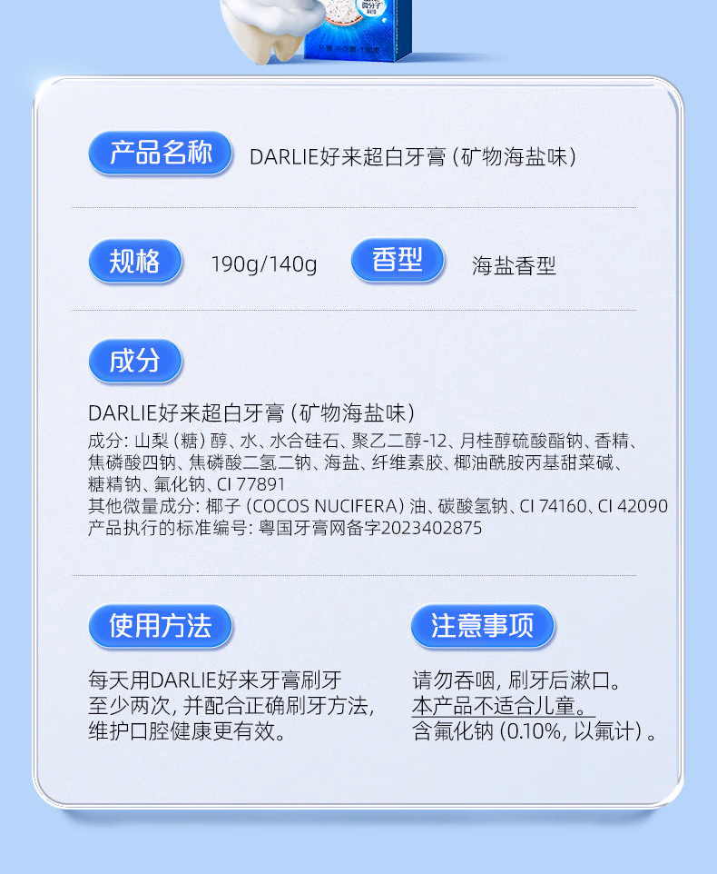 黑人(DARLIE) 超白矿物盐 140g 牙膏 (计价单位:支)