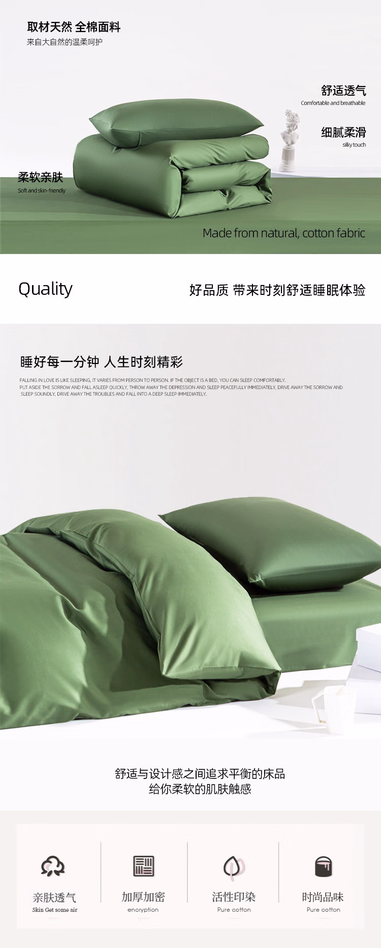 伊伊爱 TJ0JD02302020 被套:150*200cm,床单:180*230cm,枕套:48*74cm*1 三件套 (计价单位:套) 橄榄绿