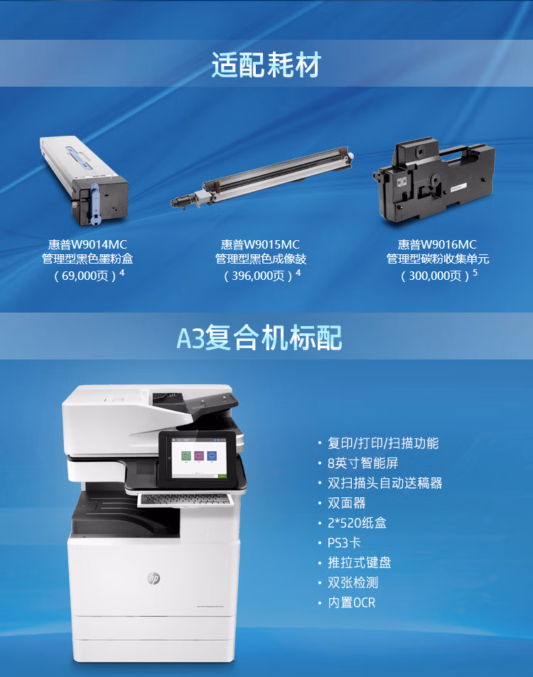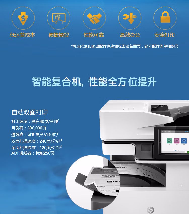 惠普(HP) E82540z 附加双纸盒 A3黑白复印机 (计价单位:台) 白色