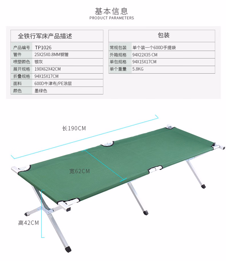 三极户外(Tri-Polar) TP1026 190*62*42cm 折叠床 (计价单位:把) 军绿色