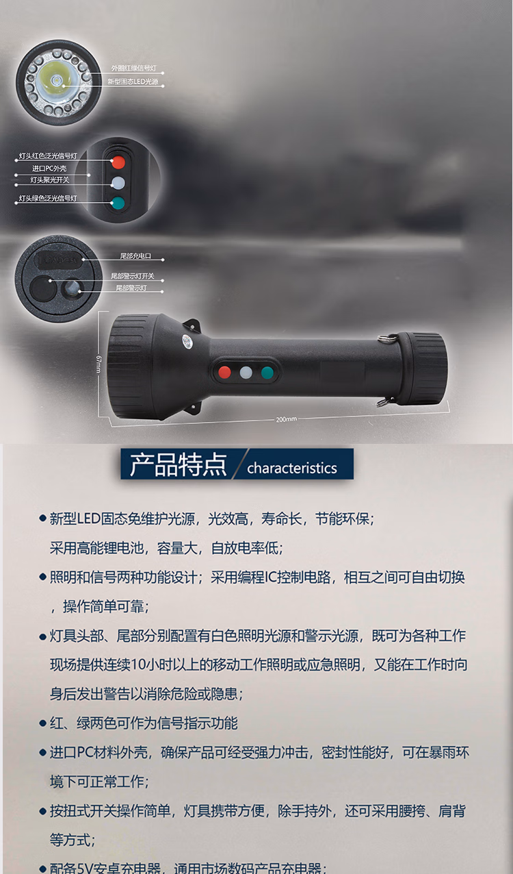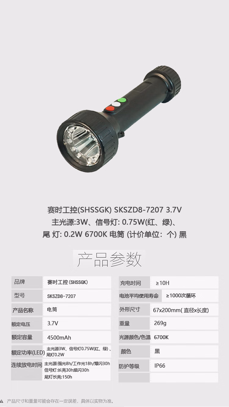 • 商品名称:赛时工控(SHSSGK) SKSZD8-7207 多功能信号电筒 (单位:个) 黑