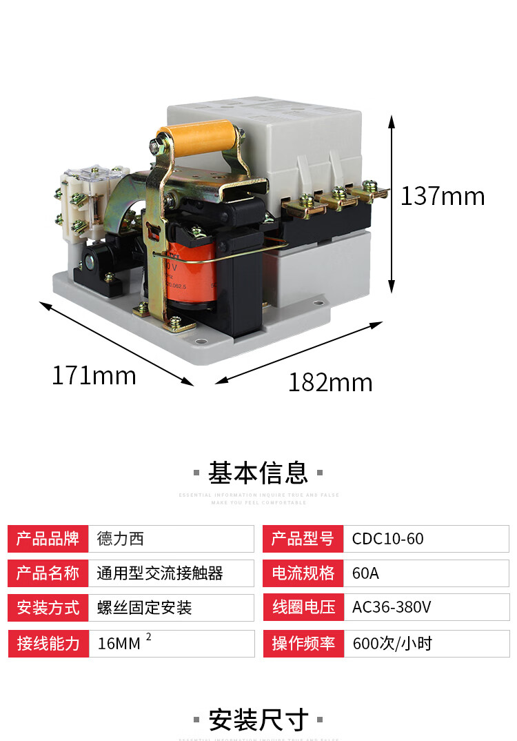 德力西 接触器 CDC10-60 交流接触器CJT1 CJ10 380V 220V 60A 红色 单位:个