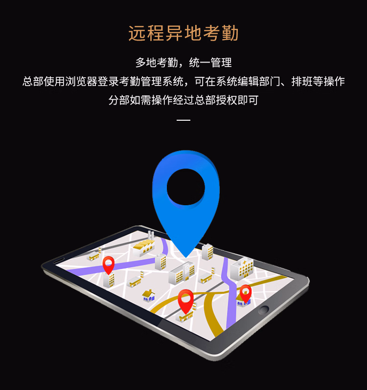 • 考勤功能:异地考勤