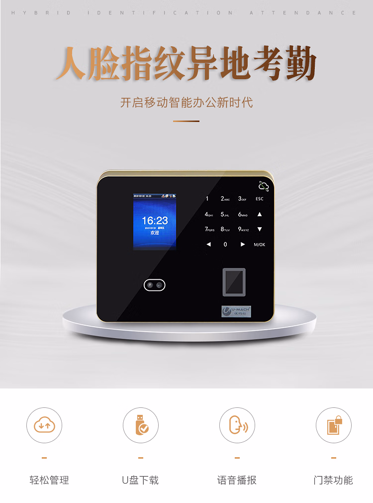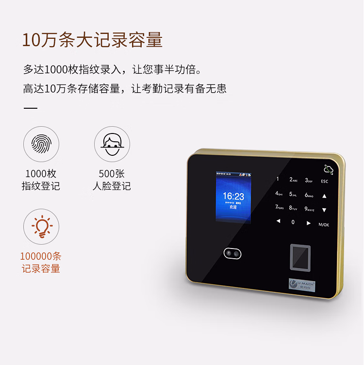 优玛仕(U-MACH) U-PF1000-BS 人脸识别考勤机 (计价单位:台) 黑色
