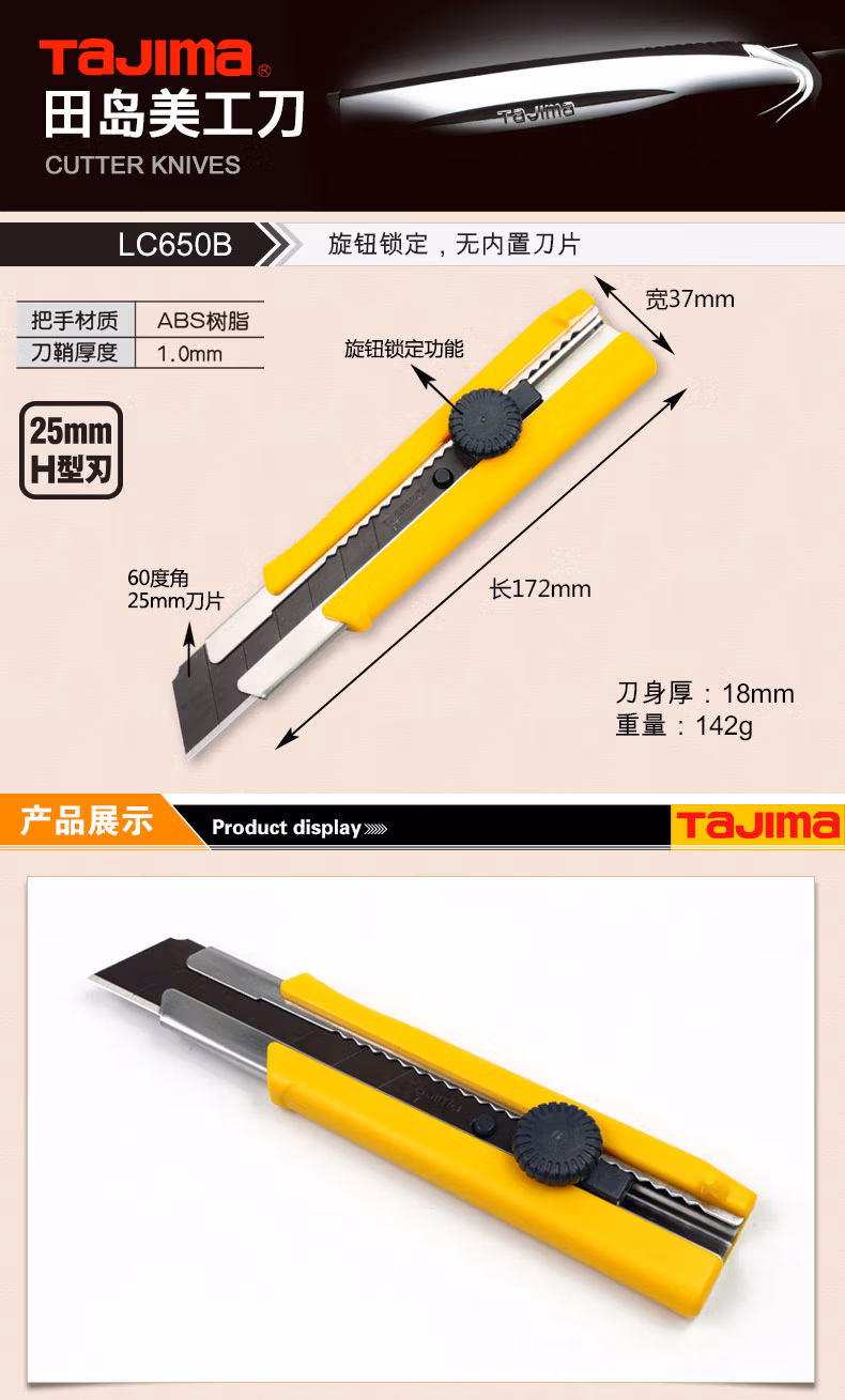田岛(TAJIMA) LC650B 大号25mm 美工刀 (计价单位:把) 黄色