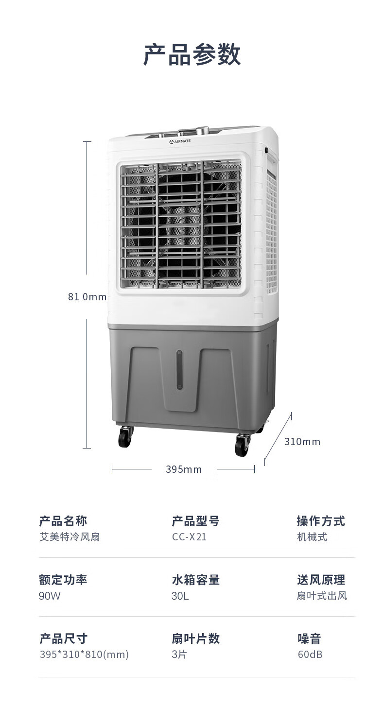 艾美特(Airmate)冷风机空调扇大型可移动商用家用水冷工业冷风扇工厂食堂制冷网吧车间餐厅CC-X21 单位:台