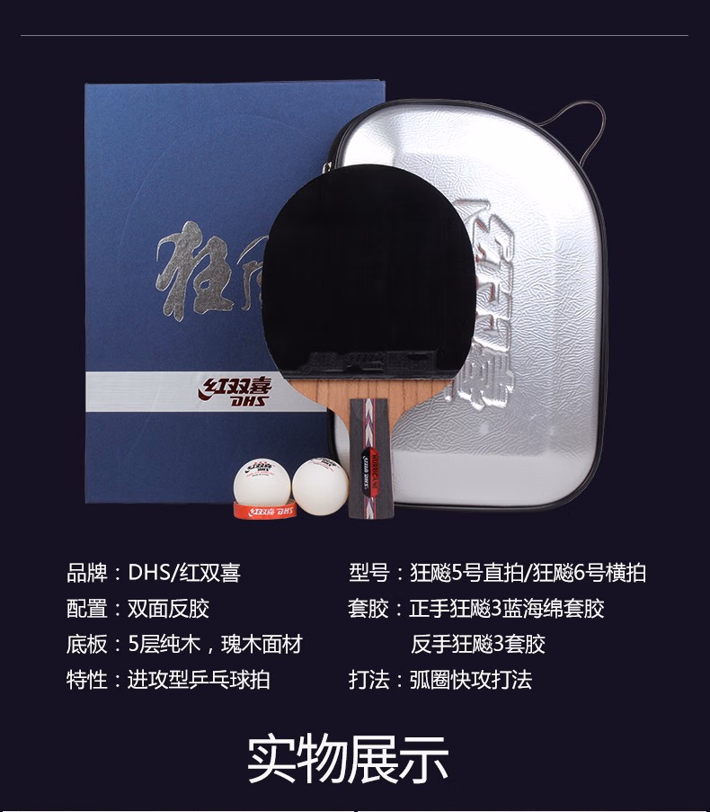 红双喜(DHS) 狂飙2号全能型横拍 乒乓球拍 (计价单位:个) 深蓝色