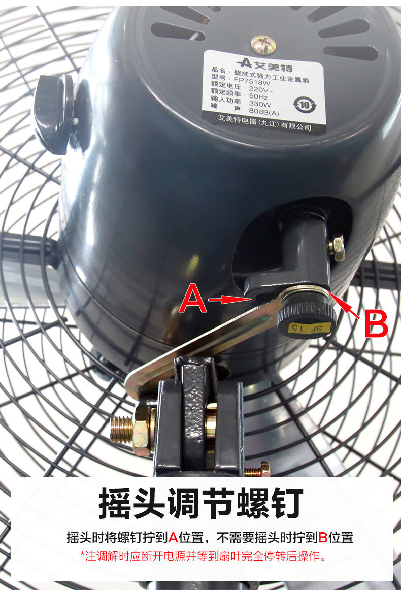 艾美特(AIRMATE) 电风扇工业扇大落地扇工厂工程强力金属牛角扇铁叶 500壁挂款/铜芯电机/风大音轻 单位:台
