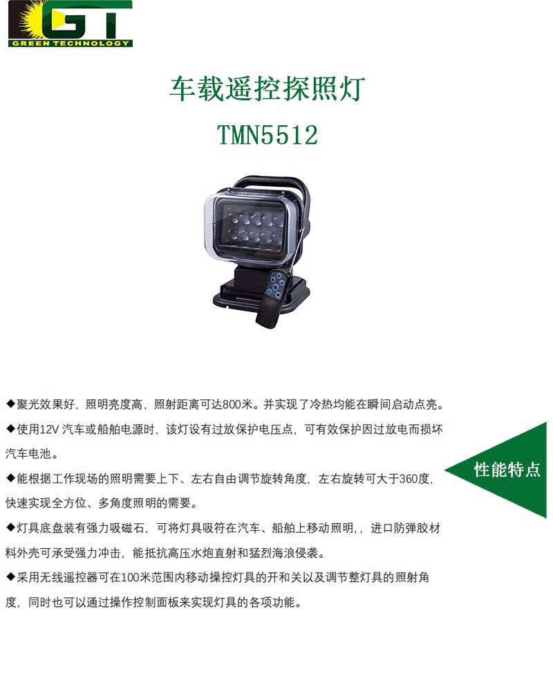 • 商品名称:吉特(GT) TMN5512 车载遥控探照灯 (计价单位:盏) 黑色 主机