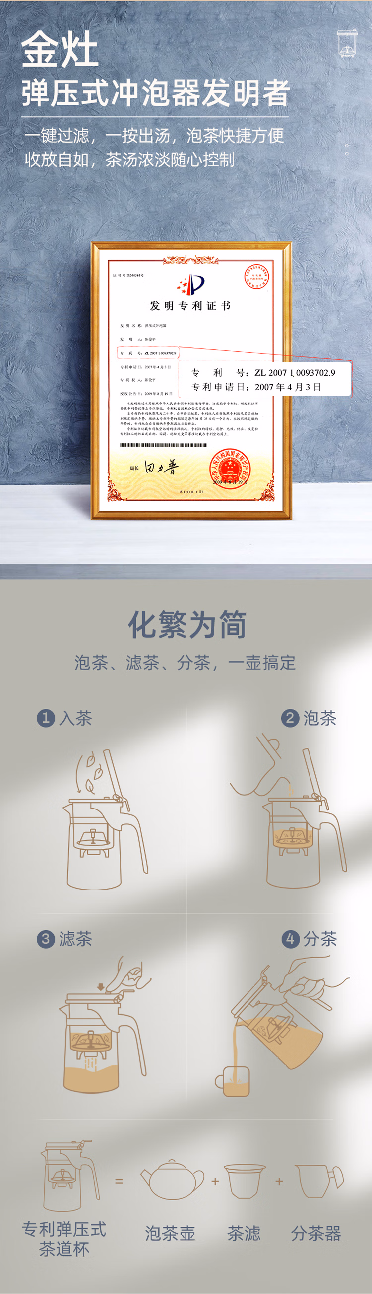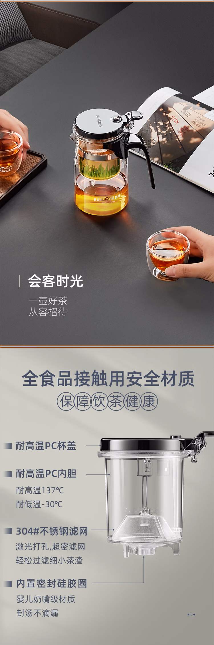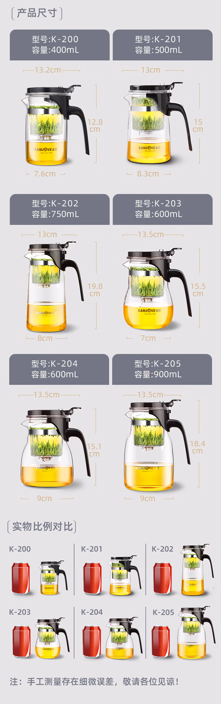 金灶(KAMJOVE) K-204 飘逸杯 泡茶壶 玻璃茶具 (计价单位:套) 透明