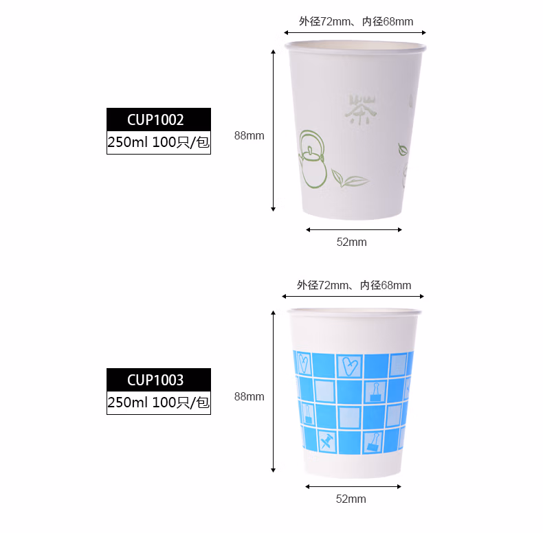 史泰博 CUP1000 270ml 格子图案 一次性纸杯 50.00 个/包 (计价单位:包) 白色